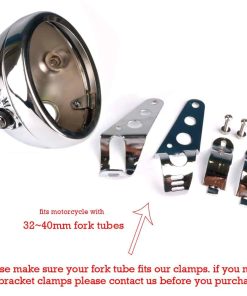 5.75 Faro de motocicleta con cubierta cromada se ajusta a la mayoría de las motocicletas/ para motos Métricas/ para Cruiser Bike/ para principiantes/ para Choppers/ para Cafe Racers/ para Micargi Bicycles/ para Kawasaki Vulcan 900 Custom/ para Kawasaki Vulcan 800 bobber/ para Rebel 500/ para Shadow/ para Suzuki u otras aplicaciones personalizadas, etc. Faro de motocicleta de 5.75 pulgadas con cubierta cromada hecho de conector H4 de 3 pines, enchufar y listo para muchos modelos; ensamblaje de faro de motocicleta se ajusta a cualquier motocicleta con tubos de horquilla de 32~40mm (algunos modelos pueden necesitar soporte de montaje más grande, contáctenos antes de la compra). Faro LED de 5.75 pulgadas hecho de carcasa de aleación de aluminio, lente de PC, a prueba de golpes, resistente al polvo, impermeable IP67; El conjunto de faros de motocicleta de mercado secundario viene con Faro de 5-3/4″ y la carcasa del faro, así como las abrazaderas de sujeción, se ajusta a la mayoría de los modelos de motocicletas. Paquete: 1 x Faro de 5.75 pulgadas(5-3/4″) + 1 x Cubierta del Faro + 1 x Abrazaderas de Montaje de Horquilla; Puede requerir modificaciones menores para algunos modelos, asegúrese de que esta pieza se ajuste a su vehículo antes de comprar, si tiene alguna pregunta, envíenos un correo electrónico. Consejo cálido: el soporte de montaje lateral de tubo de horquilla no es redondo, tiene 3 agujeros para ajustar.