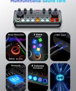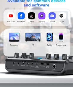 Bundle completo de Equipo para Podcast SINWE P99 es tu solución todo en uno de interfaz de audio y mezclador de audio, diseñado para una grabación de podcast óptima, streaming en vivo y DJ, asegurando calidad de sonido superior y controles intuitivos. Disfruta de 4 efectos de sonido personalizables y 5 efectos de audio especiales integrados, junto con auto-tune de 12 pasos y tonos ajustables (Agudos, Medios, Graves). El paquete te permite modificar tu voz con 5 transformaciones únicas, desde tonos masculinos y femeninos hasta divertidos sonidos de monstruos, mejorando tus posibilidades creativas. Disfruta de un audio excepcional con nuestros Micrófonos de Condensador Multipropósito. Con alta sensibilidad y relación señal-ruido, cada palabra se escucha claramente. Su patrón cardioide capta el audio frente a la fuente de sonido mientras suprime el ruido no deseado, asegurando una grabación de sonido clara y rica. Compatible con la mayoría del software, incluidos OBS Studio, Discord, Twitch, TikTok, YouTube, Facebook, Streamlabs, Streamyard y Zoom, facilitando la grabación y streaming. El Equipo para Podcast P99 también es compatible con la mayoría de las laptops, PCs, Windows, macOS, smartphones y tablets, y admite hasta 2 dispositivos y 2 plataformas simultáneamente. Nota: puede ser necesario un adaptador OTG para smartphones sin jack de 3.5mm (no incluido). Presentando un kit de micrófono de condensador USB plug-and-play, este kit ofrece una configuración sin problemas que funciona perfectamente con tus dispositivos, sin necesidad de alimentación fantasma. Es perfecto para cantantes, podcasters y artistas de voz en off que requieren una integración de sistema eficiente. Tu satisfacción es nuestra prioridad. Si encuentras algún problema al usar tu bundle de equipo para podcast, nuestro equipo de atención al cliente dedicado está disponible para ayudarte. No dudes en comunicarte para obtener soporte y acceder a guías de usuario y videos útiles.