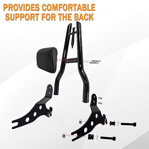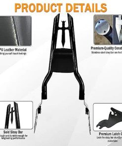 Especificaciones: Tipo: Sissy bar alto para Fatboy/breakout Estado: Nuevo Color: Negro Material: Fabricado en aluminio billet de alta resistencia y acero de calidad premium Características: Respaldo personalizado para sissy bar, proporciona un lugar más cómodo para el pasajero. Ama tu tiempo en la carretera, gran sensación para los motociclistas en el viento Fácil instalación, te permite quitarlos fácilmente cuando no los necesitas. Compatible con múltiples modelos de Harley Davidson. Paquete: 1 pieza de sissy bar y kits de hardware de acoplamiento (como se muestra en la imagen)