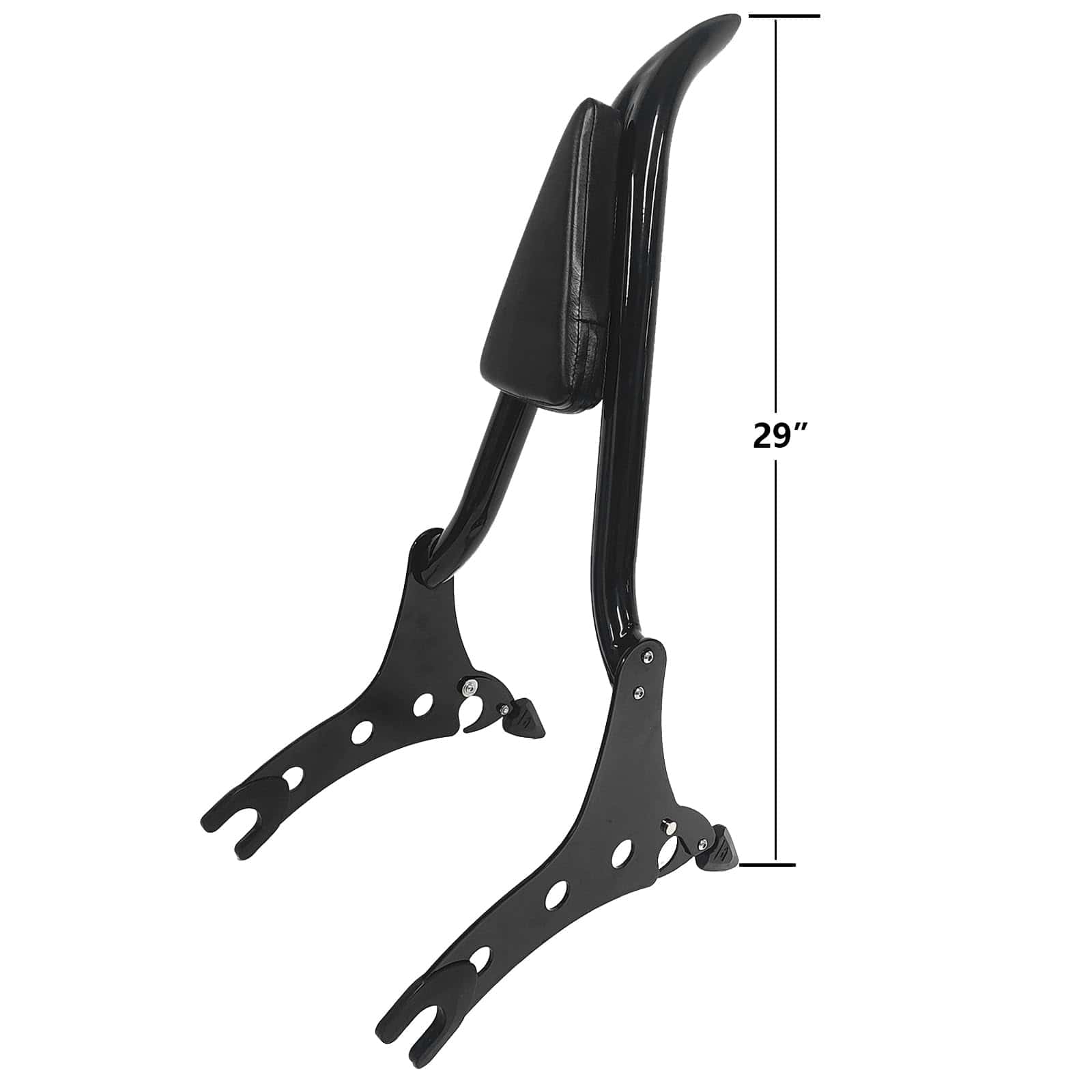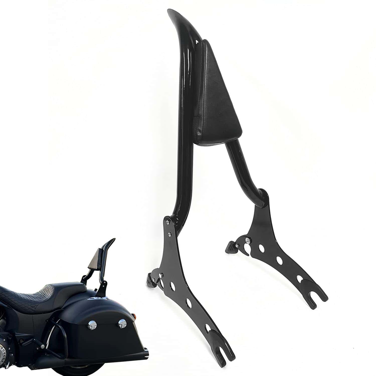 Este sissy bar negro de 29 pulgadas con respaldo de pasajero es compatible con las Indian Accessories Chieftain Roadmaster Springfield Challenger Vintage Pursuit Dark Horse fabricadas entre 2014-2024 (No es compatible con Chief 2021+). Está diseñado a medida para satisfacer tus necesidades de conducción, ofreciendo los toques finales perfectos para el exterior de tu moto. Los sissy bars y respaldos de pasajeros traseros personalizados mantienen tus accesorios de forma elegante, ordenada y segura, gracias a su construcción con materiales de acero aleado duradero. El diseño inteligente de este conjunto garantiza una excelente protección y tranquilidad, sin agregar logos o mensajes innecesarios.
