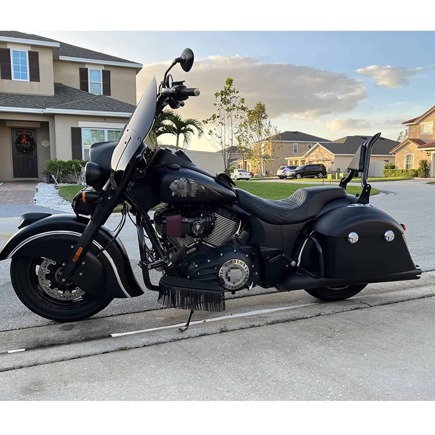 La instalación de este sissy bar es fácil y garantiza un ajuste perfecto para Chieftain Roadmaster Springfield Challenger de los años 2014-2024, incluyendo submodelos Dark Horse, Elite, Limited, Limited Icon, Classic, 111, 116, Jack Daniels Edición Limitada (EXCEPTO jefe, super jefe, Scout, Bobber y modelos FTR) con el mismo sistema de bloqueo que el estante de montaje OEM. Los espaciadores de montaje se venden por separado. Además, esta almohadilla de respaldo se destaca por su resistencia y calidad premium, lo que garantiza una mayor seguridad y durabilidad para tu moto.