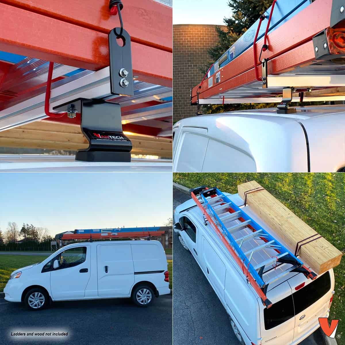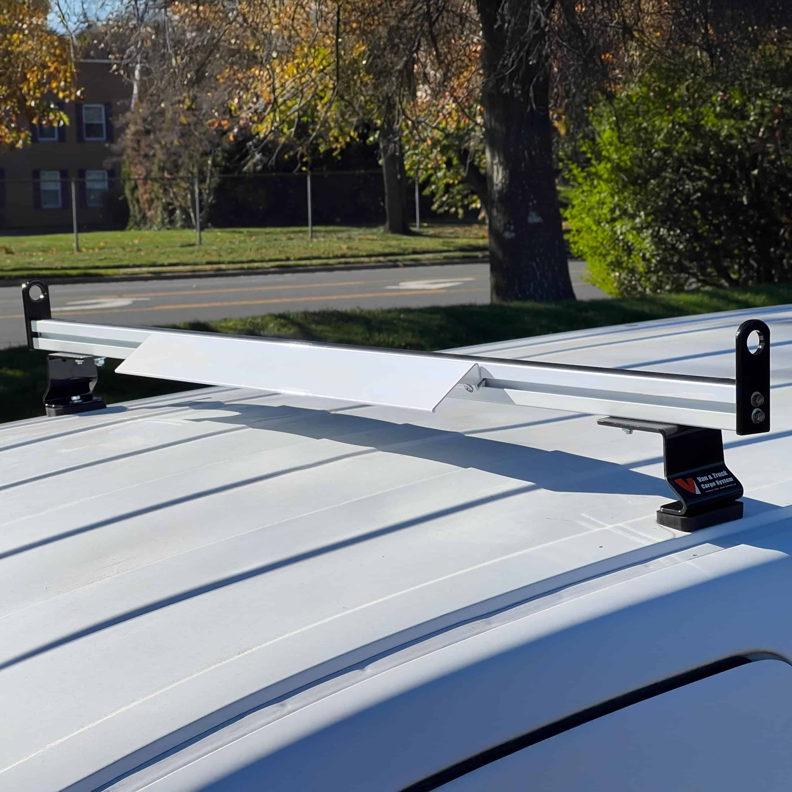 Presentamos el rediseño del sistema de 2 Barras Vantech AMZ con deflector de ruido. Se ajusta directamente a los puntos de montaje originales. No se requiere perforación. El sistema está fabricado en aluminio ligero que pesa apenas menos de 10 lbs. Una gran adición al nuevo sistema de barras AMZ es el panel frontal para reducir el ruido del viento. Este es un sistema de barras de perfil bajo para Ford Transit Connect 2008-2013 y Nissan NV200 2014 en adelante.