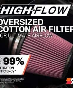 Este sistema de admisión de aire frío de K&N está diseñado para su vehículo. Un tubo de admisión de aluminio curvado a mandril ayuda a aumentar el volumen de flujo de aire hacia su motor y proporciona un incremento garantizado en potencia y torque sin necesidad de ajustes. Este sistema de admisión se combina con un Filtro de Aire de Alto Flujo REUTILIZABLE DE POR VIDA lavable que cuenta con un medio filtrante de algodón aceitado. El diseño cónico y de gran tamaño le permite recorrer hasta 100,000 millas entre servicios de filtro en condiciones normales de conducción en carretera. Un protector térmico abierto diseñado a medida ayuda a proteger el aire de admisión de la alta temperatura de su compartimento del motor, y en general, todo el sistema se puede instalar típicamente en menos de 60 minutos. No está permitido su venta ni uso en California en cualquier vehículo motorizado controlado por contaminación.