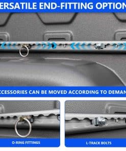 3. Función Práctica: El sistema de barandas compatible con el sistema de rieles de cama de camiones Chevy Silverado 2019-2025 le permite dominar fácilmente el área de la camioneta. Después de instalar el riel, el espacio del maletero se puede utilizar de manera más eficiente y la carga se puede colocar según diferentes categorías. También es posible asegurar la mercancía para evitar que se mueva durante el proceso de conducción del automóvil. Haga que su automóvil se vea ordenado y limpio. Además, se pueden utilizar para montar varios accesorios como revestimientos de cama y redes de carga, lo que le permite optimizar el almacenamiento y la organización de la cama de su camión para lograr una máxima eficiencia.