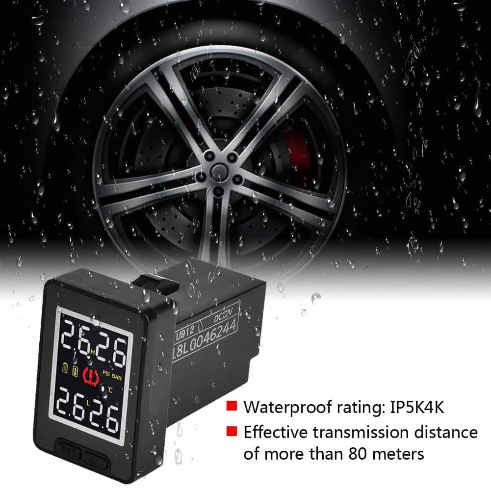 4. Fácil de usar Fácil instalación y recepción en tiempo real. Suministro a través del encendedor de cigarrillos o mediante puerto USB. Distancia efectiva de más de 80 metros. Los sensores de pasaporte actualizan los datos en tiempo real y le alertan inmediatamente cuando la presión y la temperatura de los neumáticos aparecen anormales.