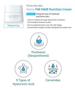 Atomy The Fame Nutrition Cream es un sistema de cuidado de la piel compuesto por dos cremas de 50ml cada una. Esta crema facial es conocida por sus propiedades antienvejecimiento y está diseñada para hidratar la piel en profundidad. ¡Descubre los beneficios de esta crema coreana de renombre mundial! Compra ahora y experimenta una piel más radiante y joven.