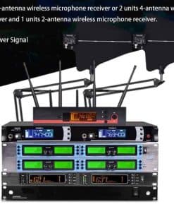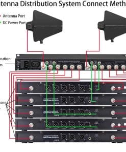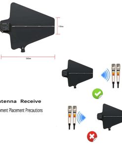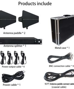 El producto es un sistema de distribución de antena UHF que puede expandir las señales del sistema de micrófono inalámbrico dividiendo un par de antenas al receptor inalámbrico.También amplifica las señales RF para compensar la pérdida de inserción que resulta de dividir la potencia de la señal en múltiples salidas. Y puede suministrar el puerto de alimentación al sistema inalámbrico UHF. Funciones del sistema: Capacidad de expansión: el sistema de distribución de antenas se utiliza para un sistema inalámbrico UHF grande, cuatro receptores inalámbricos pueden utilizar dos mismas antenas para cada unidad. El puerto en cascada puede recibir el quinto receptor de micrófono o el segundo sistema de distribución de antena de la unidad. Compatibilidad: el sistema de distribución de antena y todos los micrófonos inalámbricos que funcionan en la frecuencia de compatibilidad son compatibles. Puerto en cascada: dos puertos en cascada de antena BNC de 50 pueden conectarse extra a un sistema de distribución de antena o al quinto receptor inalámbrico. El sistema inalámbrico grande puede funcionar con un par de antenas. Tipo de antena: antena direccional Soporte de receptor: 5 juegos Frecuencia: 450-970MHZ Ganancia: 6db típico Impedancia: 50 Dirección: ovalada 180 grados típica Polaridad de dirección: vertical Terminal de conexión: conector BNC en ángulo recto fijo Estructura: vidrio de cobre y revestimiento de película de cobre. Productos incluidos: Pala de antena 2 Divisor de antena 1 Estuche metálico 1 Manual en inglés 1