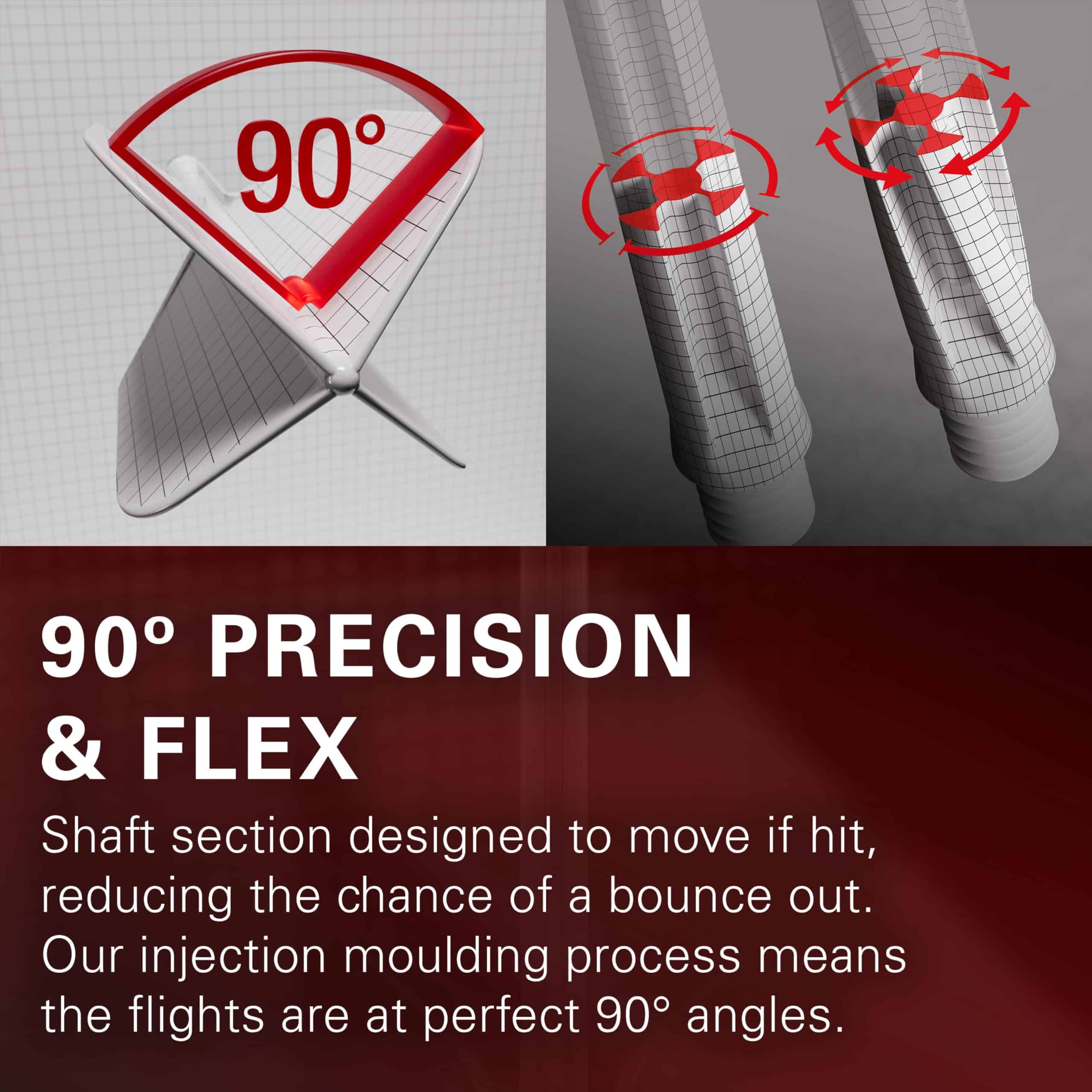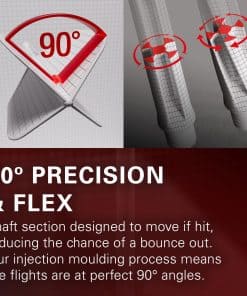 3. PRECISIÓN DE 95 GRADOS Y ROSCA UNIVERSAL 2BA: Disfruta de ángulos de vuelo perfectos durante el juego, gracias a nuestro proceso de moldeo por inyección de precisión, manteniendo un ángulo constante de 90 grados para una mayor precisión. Con una rosca universal 2BA, nuestro vuelo y eje integrado K-Flex aseguran la máxima compatibilidad con el barril del dardo.