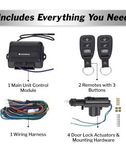 Este Sistema de Entrada sin Llave de InstallGear ofrece una experiencia de bloqueo y desbloqueo sin llave para su automóvil, camioneta o auto. Con dos controles remotos de 3 botones, podrá acceder rápidamente a su vehículo con solo presionar un botón. Además, este sistema viene con la conveniencia de la liberación remota del maletero, ideal para acceder eficientemente al cargar comestibles o equipaje. La confirmación visual del bloqueo y desbloqueo del vehículo le brinda tranquilidad al ver las luces parpadear cada vez que utiliza su llave sin llave. Este kit de entrada sin llave es versátil y se adapta a vehículos de 2 puertas o 4 puertas, ya que incluye cuatro actuadores de bloqueo de puertas para una seguridad completa. El kit es duradero y confiable, con todos los componentes necesarios para una instalación sin problemas, lo que garantiza un rendimiento a largo plazo para una mayor seguridad y comodidad del vehículo.