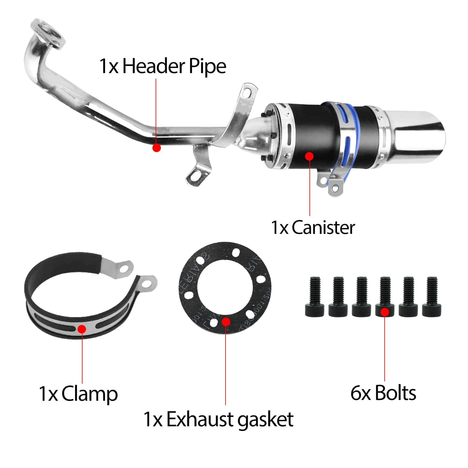 Sistema de Escape de Alto Rendimiento FLYPIG GY6 150cc Partes Cortas para Reemplazar ATV 4 Tiempos Scooter chino Moped ATV Go Kart (Negro)