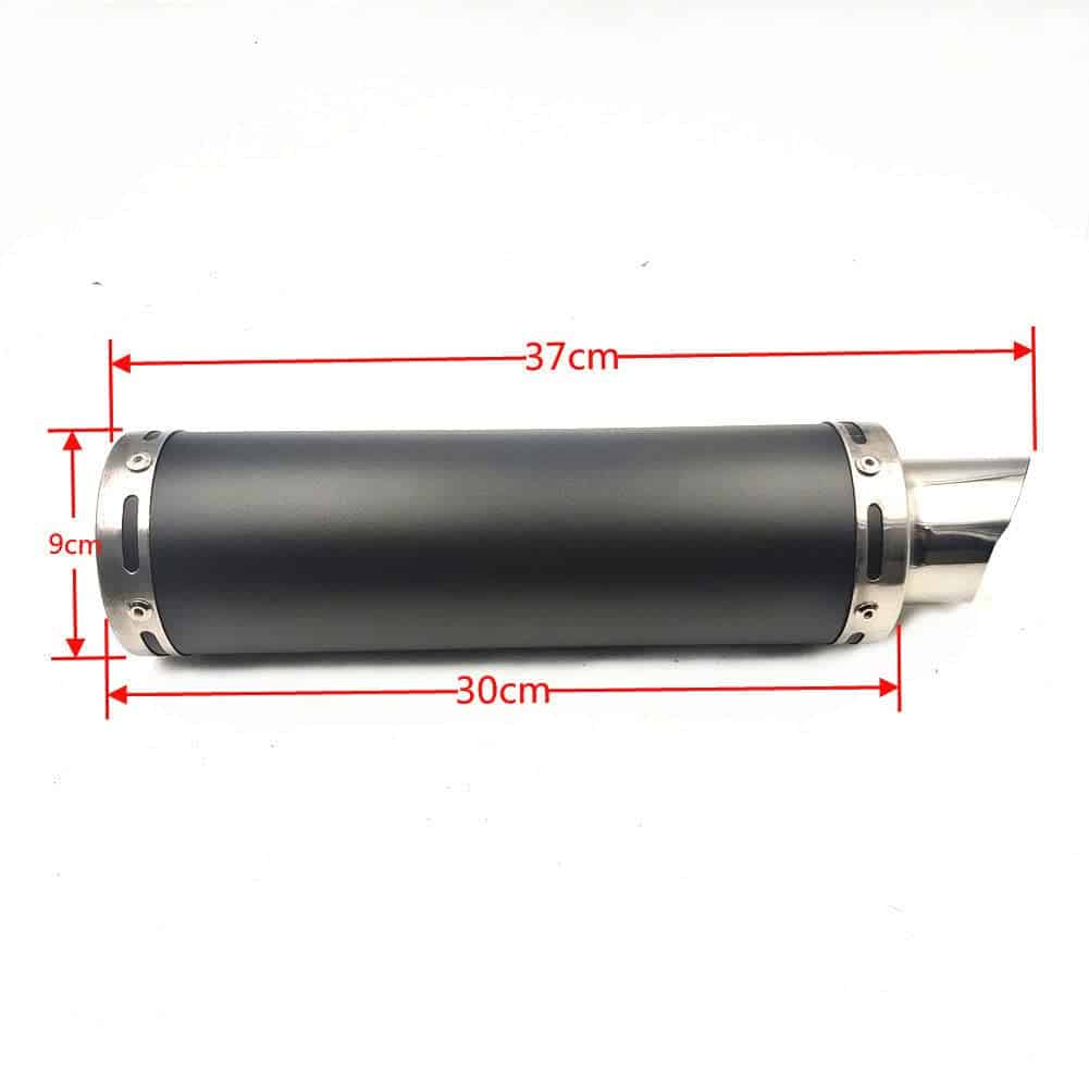 Sistema de Escape para Mofle ZTDZZH Negro para Scooters GY6 Motores 139QMA 139QMB de 4 Tiempos. Este mofle negro es ideal para aquellos propietarios de scooters con motor GY6 de 50cc que buscan mejorar el rendimiento de su vehículo. Con un tamaño de 37cm de largo y 9cm de diámetro, este mofle es fácil de instalar y le dará a tu scooter un aspecto deportivo y elegante. Antes de realizar la compra, asegúrate de revisar la información en la imagen para una rápida utilización de los nuevos accesorios.