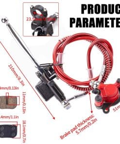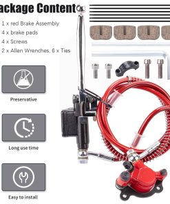 Sistema de Frenos Hidráulico Mejorado CIOM para el Lado Izquierdo de manillares de 7/8″ 50 pulgadas de Manguera para 97cc 2.8HP Baja Doodle Bug DB30 Blitz Dirt Bug Racer Mini Bike Motorsports Go Karts en color rojo. Hecho de material de alta calidad, el cilindro maestro utiliza fluido de freno DOT4. Después de la instalación, deberá drenar el cilindro maestro y luego drenar el líquido de frenos. En comparación con el viejo calibrador de freno mecánico, este calibrador de frenos hidráulico mejorado tiene más fuerza de sujeción en el rotor y más fuerza de frenado. El kit de frenos de mini bike es compatible solo con DB30 equipado con frenos de disco en la rueda trasera. Incluye 1 x Conjunto de Frenos plateado, 4 x Pastillas de freno, 4 x Tornillos, 2 x Llaves Allen, 6 x Lazos. Ofrecemos ventas de partes profesionales y brindamos soporte técnico gratuito. Si tiene algún problema o insatisfacción después de recibir los productos, contáctenos directamente para obtener un Reemplazo Nuevo o Devolución.