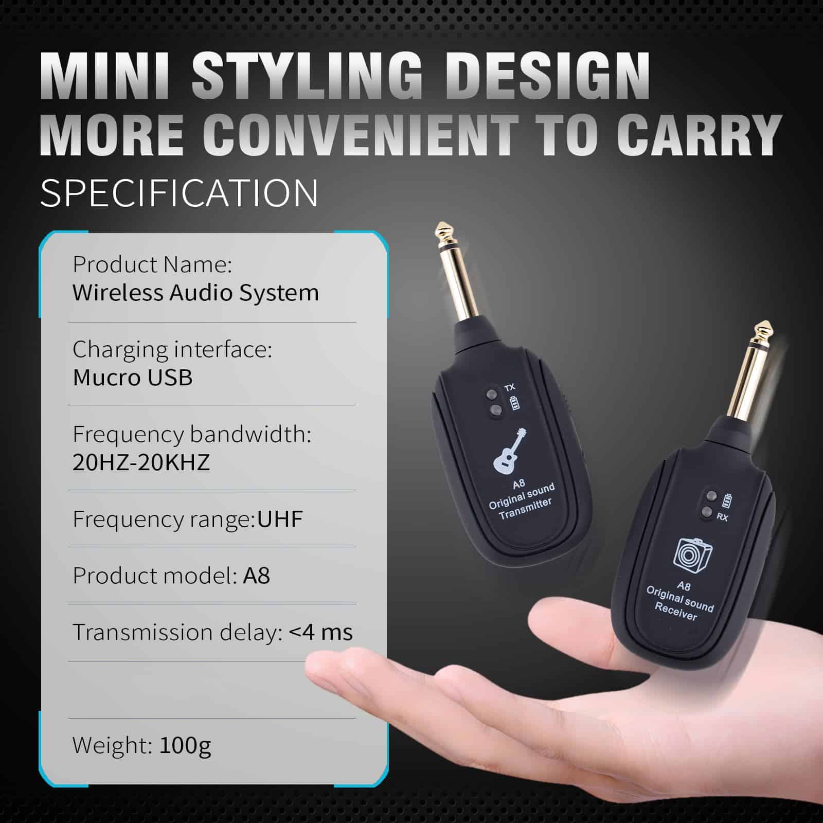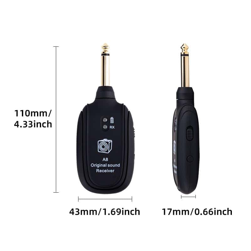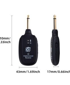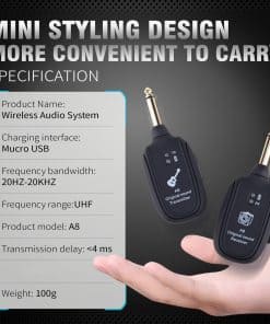 1. Tecnología Avanzada: El transmisor receptor de guitarra adopta la tecnología de transmisión inalámbrica, con un amplio rango de frecuencia y soporte de transmisión de señal sin comprimir. El rango de transmisión exterior supera los 30m/100ft y no está sujeto a enredos de cables.