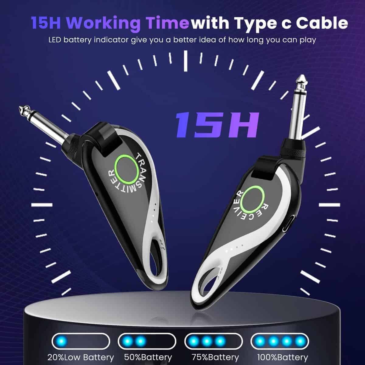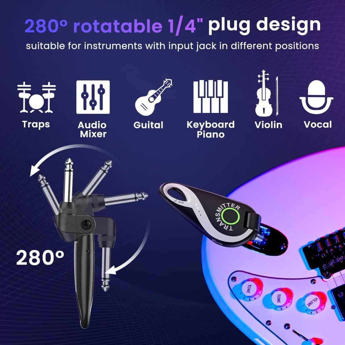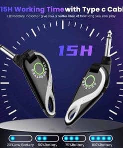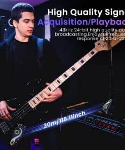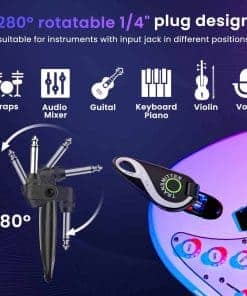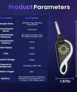 Sistema inalámbrico de guitarra completo y profesional que incorpora un transmisor y receptor inalámbricos de alta calidad, diseñado para satisfacer las necesidades de los músicos en vivo. Este sistema ofrece una larga duración de la batería, lo que garantiza hasta 15 horas de uso continuo en una sola carga. Además, la calidad de sonido de alta definición y la transmisión de audio HD de 48K/16bit aseguran que cada nota y acorde se transmitan de manera clara y auténtica. La flexibilidad del sistema, con su cabeza giratoria de 280 grados, permite una fácil adaptación a una amplia gama de guitarras y otros instrumentos. La transmisión de largo alcance de hasta 30 metros y la capacidad de transmitir a través de paredes hasta 20 metros de distancia brindan una libertad total de movimiento en el escenario. ¡Haz que tu actuación suene impecable con este innovador sistema de guitarra inalámbrico!