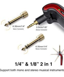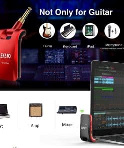 Nuestros principales ventajas: 1. Admite sonido estéreo y mono. 2. Admite conectores de 3.5mm y 6.35mm para convertir entre sí. 3. Cabeza giratoria de 280 grados, se adapta a diferentes formas de diferentes instrumentos. 4. Tasa de muestreo de 24bit/48KHz, frecuencia de señal clara. 5. Admite el uso de 6 dispositivos simultáneamente. Especificación: Nombre: LEKATO 2.4G Sistema Inalámbrico de Guitarra Transmisor y Receptor de Audio Estéreo. Color: rojo+negro. Rango de muestra: transmisión sin comprimir de 24 bit/48KHz. Latencia: 12ms. Alcance: 100 pies en exteriores. THD+Ruido: -98dB. Rango Dinámico: 105dB ponderado A. Banda de Operación: 2.4GHz ISM en todo el mundo. Respuesta de frecuencia: 20-20KHz, +1dB / -3dB. Cabeza giratoria de 280 grados, diseñada para tambores electrónicos y teclados, se adapta a la mayoría de los instrumentos. Interfaz de carga rápida USB. Funciones extendidas: 1) Nuestro sistema inalámbrico puede soportar 6 pares de dispositivos sin interferencias bajo las mismas circunstancias. 2) Un transmisor puede enviar la señal a varios receptores al mismo tiempo. A nuestros queridos clientes, LEKATO ha estado trabajando arduamente para proporcionar piezas profesionales para instrumentos musicales a nuestros clientes, y nuestros productos vienen con garantía de un año. Si tiene algún otro problema después de recibir nuestros productos, por favor envíe un correo electrónico a nuestro equipo de servicio, lo resolveremos lo antes posible. Gracias por su amable comprensión.