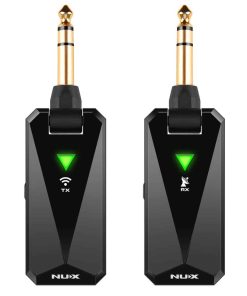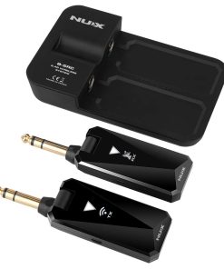 Sistema de Guitarra Inalámbrico NUX B-5RC para la mayoría de los tipos de guitarra con pastilla activa o pasiva, incluye estuche de carga. Perfecto para guitarristas y bajistas que buscan libertad de movimiento en el escenario o en el estudio. Este sistema inalámbrico funciona de forma óptima con la mayoría de las guitarras y bajos que tienen pastillas activas o pasivas. Sin embargo, ten en cuenta que no es compatible con las guitarras Godin que tengan una pastilla especial, como hemos comprobado en nuestra prueba. El algoritmo de procesamiento de señal de NUX garantiza estabilidad de la señal, latencia ultra baja (< 5ms) y mantiene el tono original y la sensación de tus instrumentos y tu técnica de ejecución. Con una banda de frecuencia de operación de 2.4GHz y un rango dinámico de 112dB, este sistema inalámbrico proporciona una transmisión de alta calidad. Además, viene con un estuche de carga/transporte que no solo protege el sistema, sino que también proporciona una duración de la batería de 9 horas y la posibilidad de cargar el sistema aproximadamente 3 veces. El diseño compacto y ligero se adapta a cualquier tipo de cuerpo de guitarra y bajo, lo que lo hace ideal para músicos de diversos estilos y preferencias. El sistema de emparejamiento automático garantiza una configuración rápida y sin complicaciones. Además, la función de silencio te permite detener temporalmente tu interpretación con solo presionar brevemente el botón de ENCENDIDO del transmisor. Experimenta la libertad y la comodidad de tocar sin cables con el Sistema de Guitarra Inalámbrico NUX B-5RC.