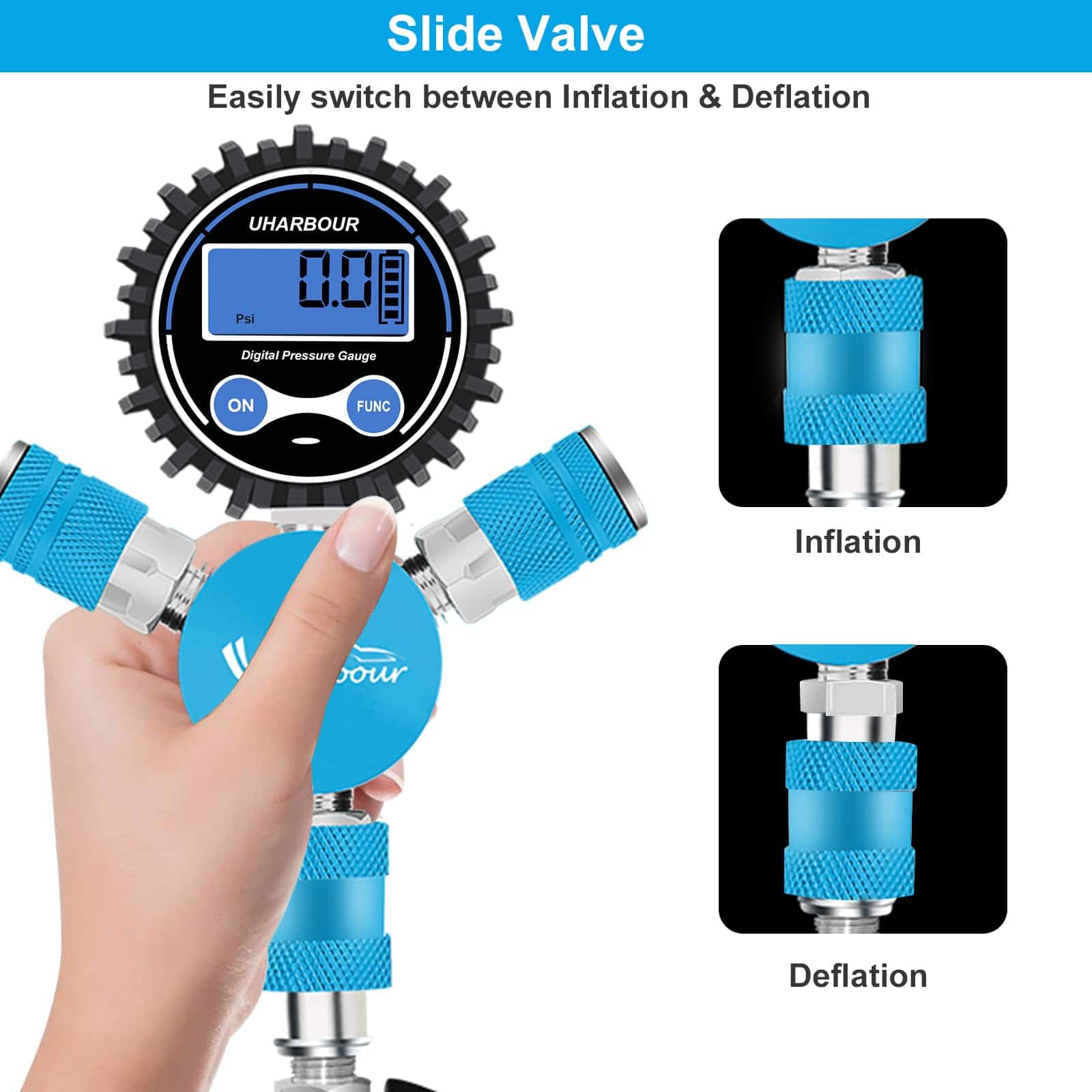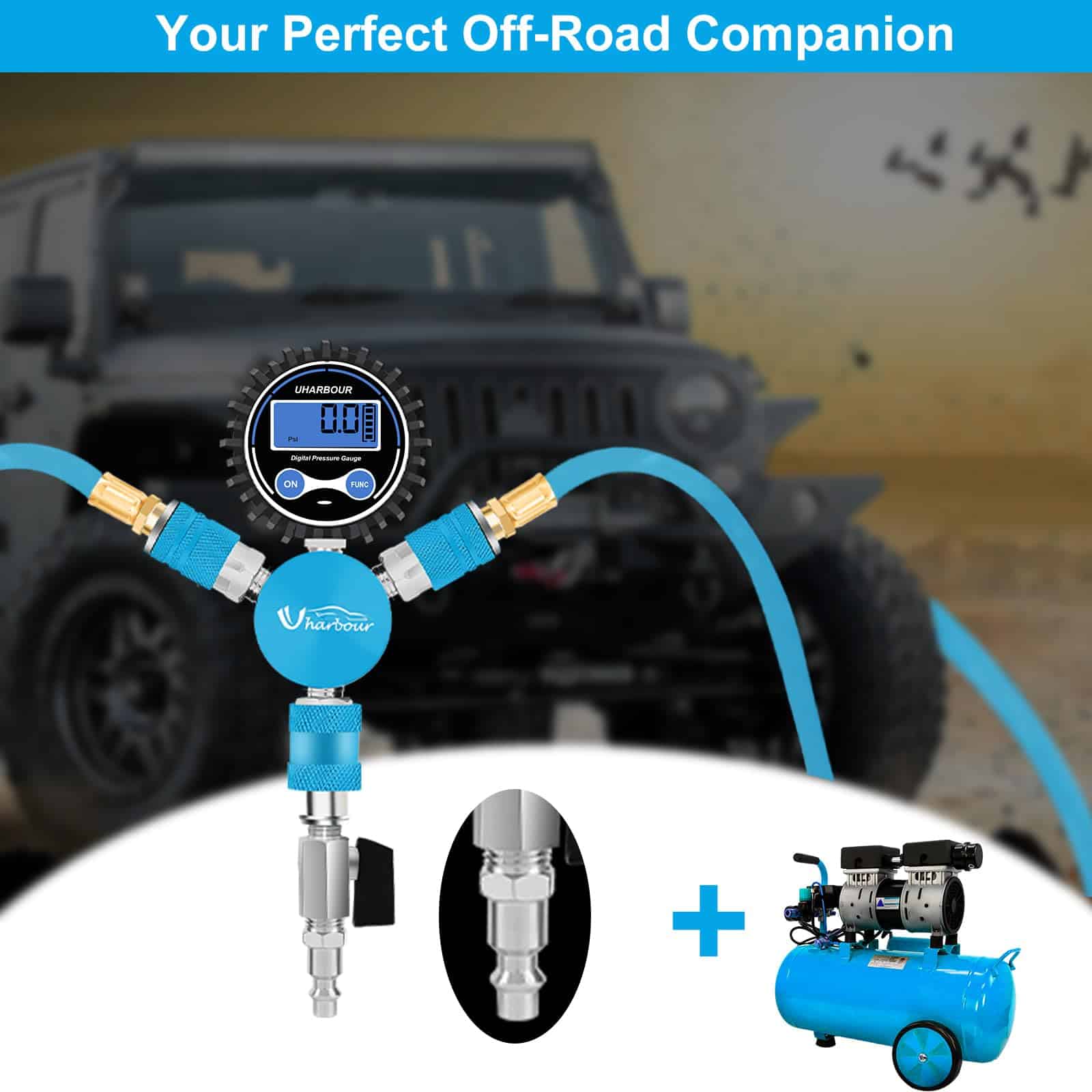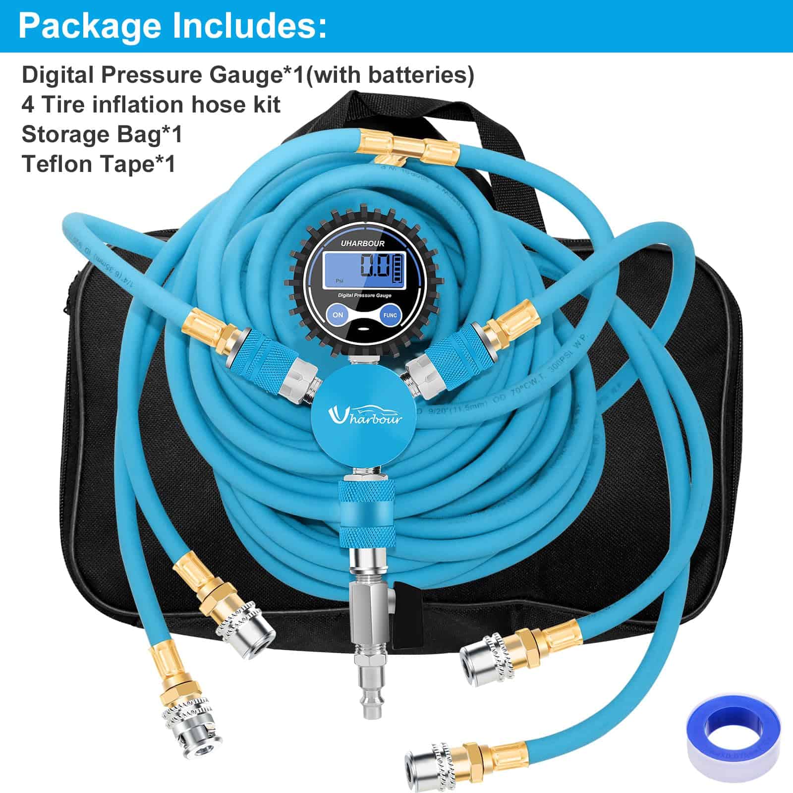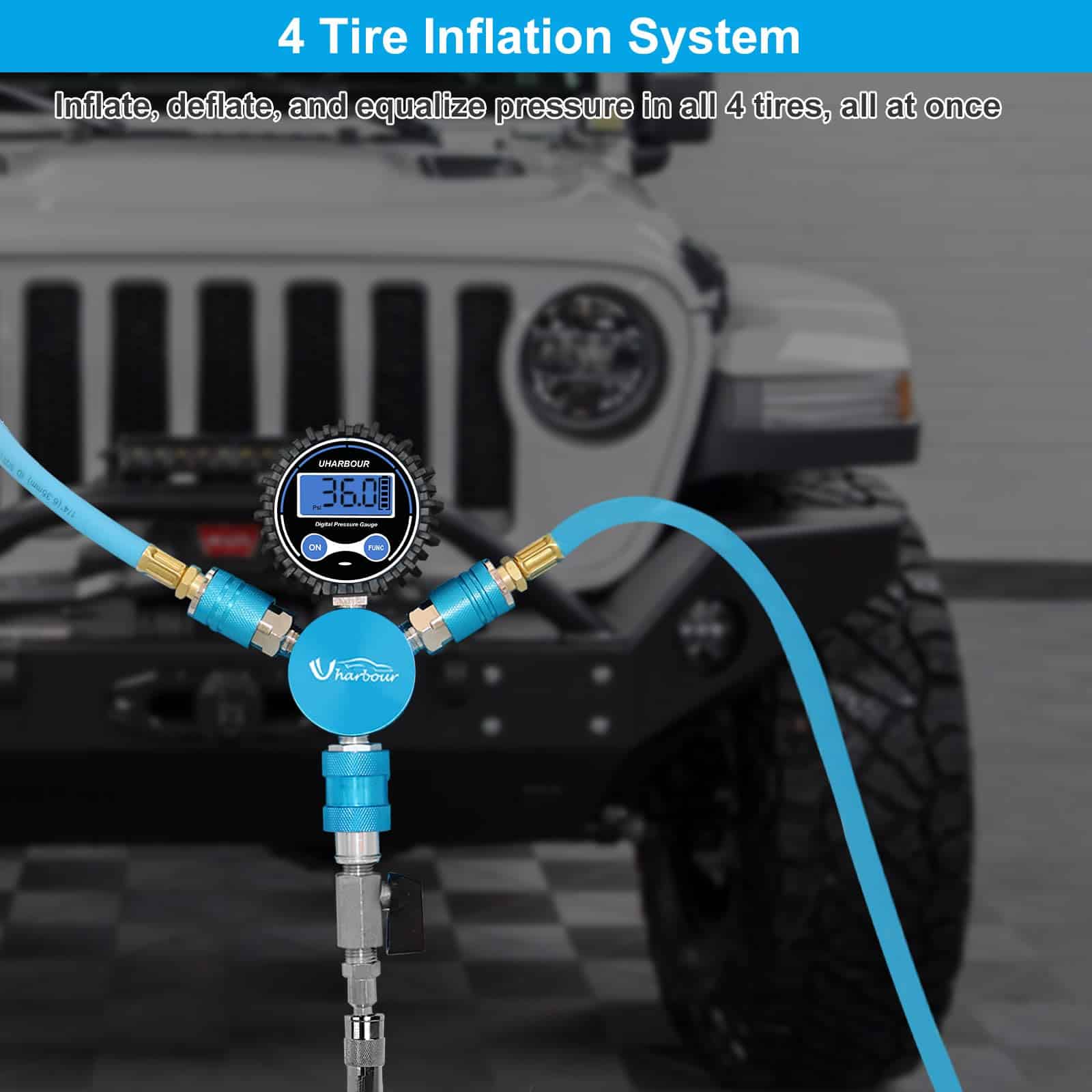 Sistema de Inflado de 4 Llantas Uharbour: Este sistema avanzado de inflado de 4 llantas te brinda la conveniencia de asegurarte de que todas tus llantas estén en perfectas condiciones sin la molestia de inflar o desinflar una por una. Con una capacidad de hasta 155″ de distancia entre ejes, puedes estar seguro de que tus llantas recibirán la presión adecuada de una sola vez. Además, con la capacidad de ajustar la presión de las llantas para diferentes condiciones de manejo, desde inflado para la carretera hasta desinflado para aventuras todoterreno, este sistema es versátil y eficiente. El Ecualizador de Presión de Llantas de 4 te ayuda a lograr el equilibrio perfecto de la presión de las llantas, lo que a su vez ayuda a prolongar la vida útil de las llantas y mejorar la eficiencia de combustible. Con la conveniencia que ofrece el sistema, no tendrás que preocuparte por perder tiempo inflando o desinflando individualmente las llantas, ya que puedes ocuparte de las cuatro de una vez. Toma el control total de las llantas de tu vehículo y disfruta de un manejo seguro y óptimo en cada viaje con el Sistema de Inflado de 4 Llantas Uharbour.