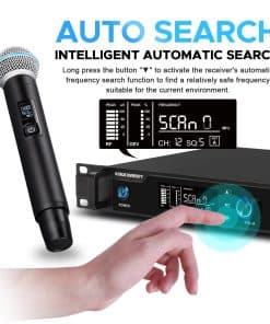 El Sistema de micrófono inalámbrico con 4 antenas Froket es perfecto para cantar, karaoke, iglesias, fiestas y escenarios. Ofrece un rendimiento inalámbrico dual UHF excepcional gracias a su circuito de diversidad verdadera y su recepción remota de cuatro antenas. Con un rango de operación efectivo de hasta 150 metros en entornos abiertos, este sistema garantiza una transmisión y recepción de señales estables y sin interferencias. El micrófono de mano incluido cuenta con un núcleo de micrófono de captación cardioide de alta calidad que ofrece un sonido claro, potente y real, con una excelente supresión de ruido de fondo y aullidos. Tanto el receptor inalámbrico como el micrófono de mano están fabricados en metal resistente para resistir daños externos y proporcionar una fiabilidad duradera. La tecnología de sincronización por IR facilita el emparejamiento rápido entre el micrófono y el receptor, reduciendo las interrupciones y maximizando la supresión de retroalimentación. El Sistema de micrófono inalámbrico con 4 antenas Froket incluye un receptor inalámbrico, dos micrófonos de mano, cuatro antenas, un cable de audio, una fuente de alimentación, anillos de goma antideslizantes y un manual de usuario. ¡Hazte con este sistema de micrófono inalámbrico de alta calidad para lograr un rendimiento excepcional en tus actuaciones, shows, discursos y canto!