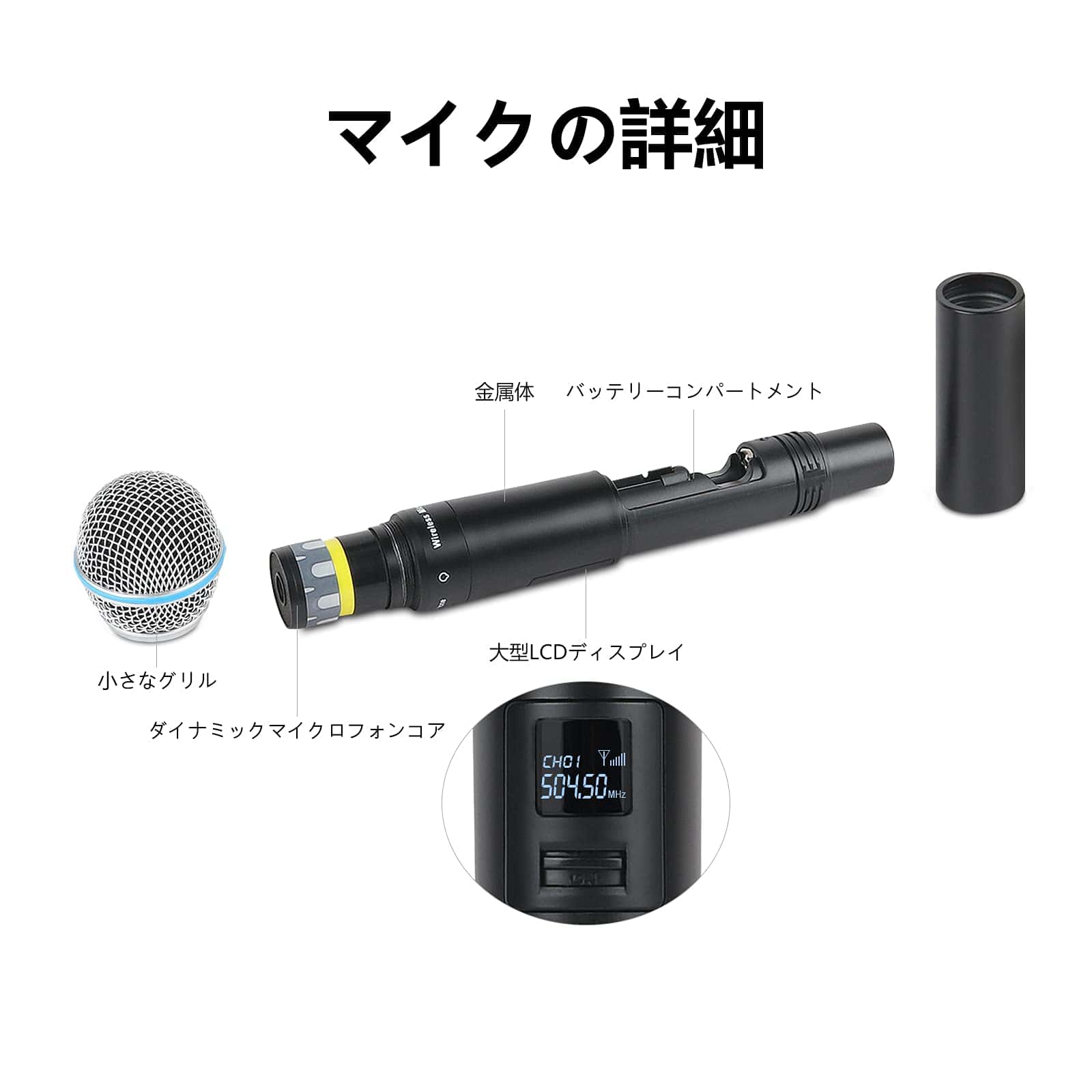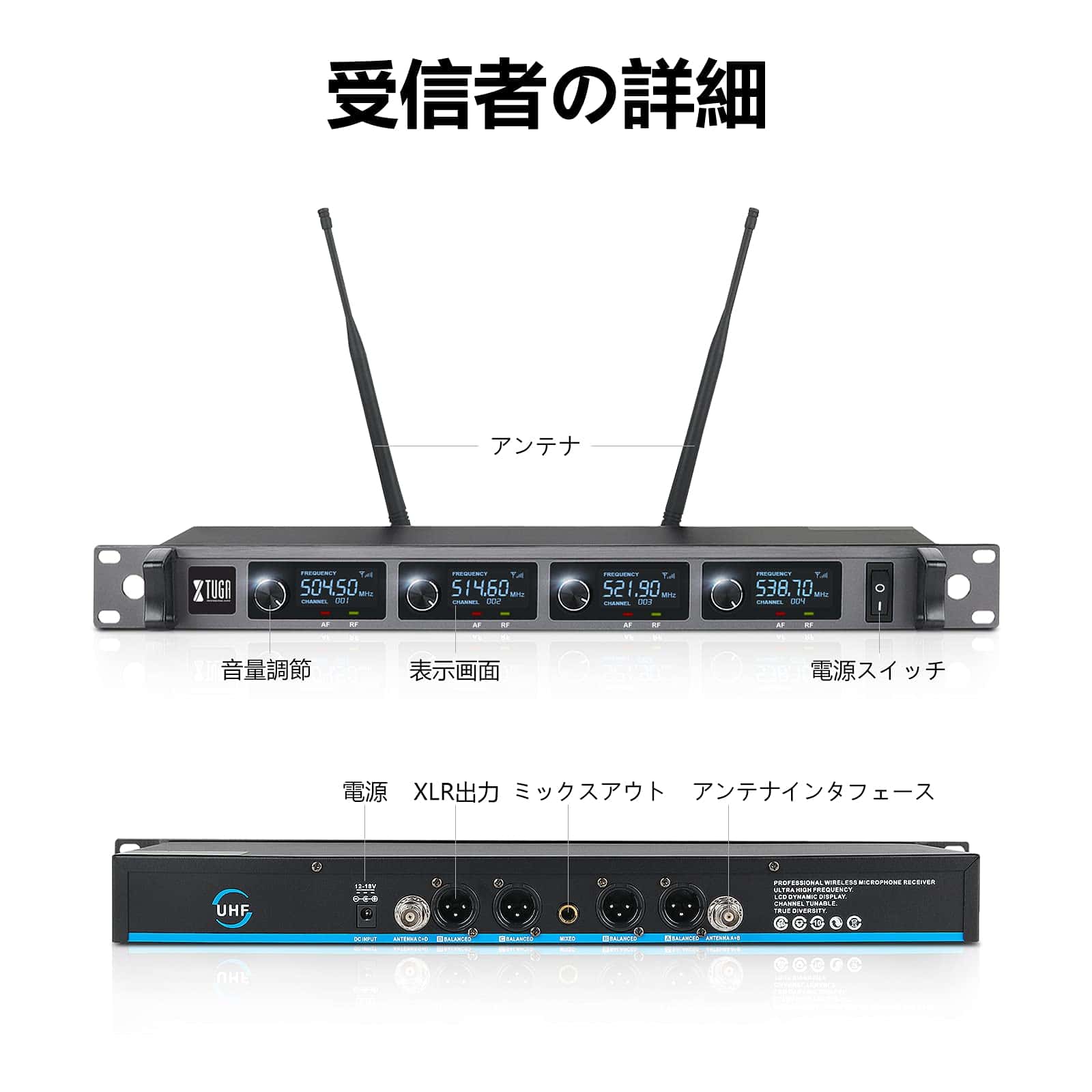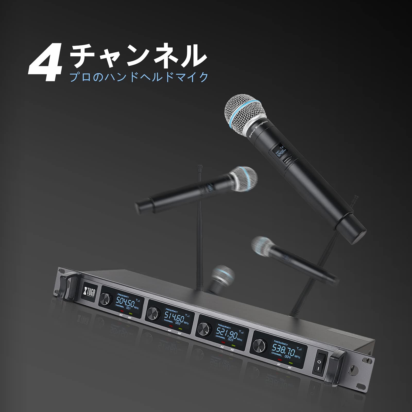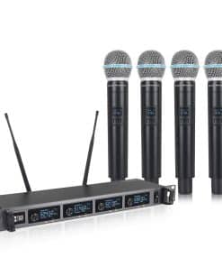 Robusto diseño y sonido de alta calidad: Construcción robusta totalmente metálica para el receptor de micrófono inalámbrico UHF de cuatro canales y micrófonos de mano unidireccionales de alta sensibilidad, adecuados para un uso intensivo. La cápsula dinámica de alta calidad está especialmente diseñada para limitar la retroalimentación y la interferencia, captando el sonido suavemente y transmitiendo el sonido sin problemas. Entrega un sonido claro, robusto y óptimo. Operación simple y conveniente Tanto el receptor como el micrófono cuentan con una pantalla LCD de alta gama, y el uso de la batería y el estado de funcionamiento son claros de un vistazo. Además, el receptor tiene cuatro salidas balanceadas XLR y una salida mixta de 1/4 (6.35mm) que se puede conectar externamente a una variedad de dispositivos externos como amplificadores, mezcladores, estéreos y más. Tecnología de transmisión estable y uso versátil: Certificación FCC y cumplimiento de las nuevas normas de la FCC, juego de micrófono inalámbrico profesional para hablar. Mejoras en la calidad del sonido, control separado de volumen y salida de sonido ajustable según sea necesario, lo que lo convierte en la elección perfecta para cualquier evento al aire libre como fiestas, bodas, discursos, conferencias, conciertos pequeños, karaoke. Con un rango de operación de hasta 300 pies. Lista de paquetes y garantía de servicio: receptor inalámbrico UHF de 4 canales, 2 antenas, 4 micrófonos de mano inalámbricos UHF, Adaptador de corriente, Cable de audio de 1/4, Manual del usuario.