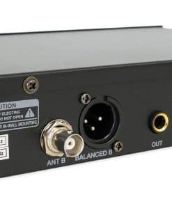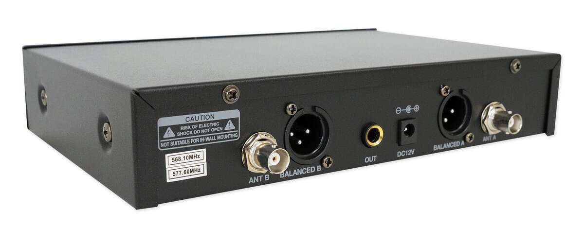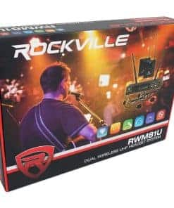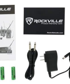 Sistema de Micrófono Inalámbrico de Diadema Rockville RWM81U Dual UHF. Alto rendimiento, sistema de micrófono de diadema inalámbrico. Incluye transmisor con dos micrófonos de diadema cardioide unidireccionales inalámbricos de alta sensibilidad. Con un diseño de doble filtro para limitar la retroalimentación e interferencias. La estabilidad de la señal ultra elimina la distorsión no deseada. Receptor profesional con pantallas a color multifunción que muestran la frecuencia, la sincronización de la señal y la entrada de audio. El transmisor se enlaza automáticamente al receptor para facilitar su uso. Use dos micrófonos (de mano o de diadema) al mismo tiempo. Controles individuales de volumen del micrófono. Carcasa de metal resistente. Construcción ergonómica de micrófono compuesto cómodo. Baja consumo de energía para una vida útil de la batería más larga. Sistema: Rango de operación: 300-400 (interior), 250-350 (exterior). Canal: Dos canales. Rango de frecuencia: 560.10 – 577.60 MHz. Estabilidad de frecuencia: 0.005%. Modo de modulación: UHF.