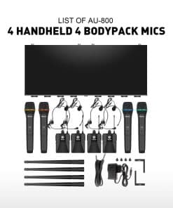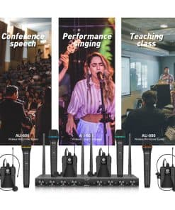 1. Estos productos de la serie adoptan frecuencia UHF y utilizan la frecuencia común estándar internacional que puede ser utilizada en todo el mundo. 2. Debido a la baja frecuencia y muchas razones, los micrófonos inalámbricos tradicionales suelen ser perturbados por muchos factores, especialmente por la variedad de armónicos que emiten los CD/DVD/VCD/LD y cualquier otro equipo digital. 3. El circuito de silenciamiento generalmente analiza la intensidad del canal de frecuencia RF en lugar del ruido y la señal necesaria. Al usar el micrófono inalámbrico tradicional en un entorno complejo o cuando la señal del micrófono es débil o el micrófono está cerrado, el circuito de silenciamiento puede abrirse repentinamente, lo que hace que el receptor envíe una fuerte ráfaga de ruido. 4. Es ideal para iglesias, escenarios de DJ KJ pequeños, cumpleaños, bodas o fiestas familiares, conferencias, salones de clases, noches de karaoke pequeñas, etc. 5. Lista de empaque: receptor inalámbrico 1, micrófono de mano 4, bodypack 4, micrófono de diadema 4, micrófono de solapa 4, antena 4, cable de audio 1, fuente de alimentación 1, codificación de ángulo 2, tornillos 4, manual 1.