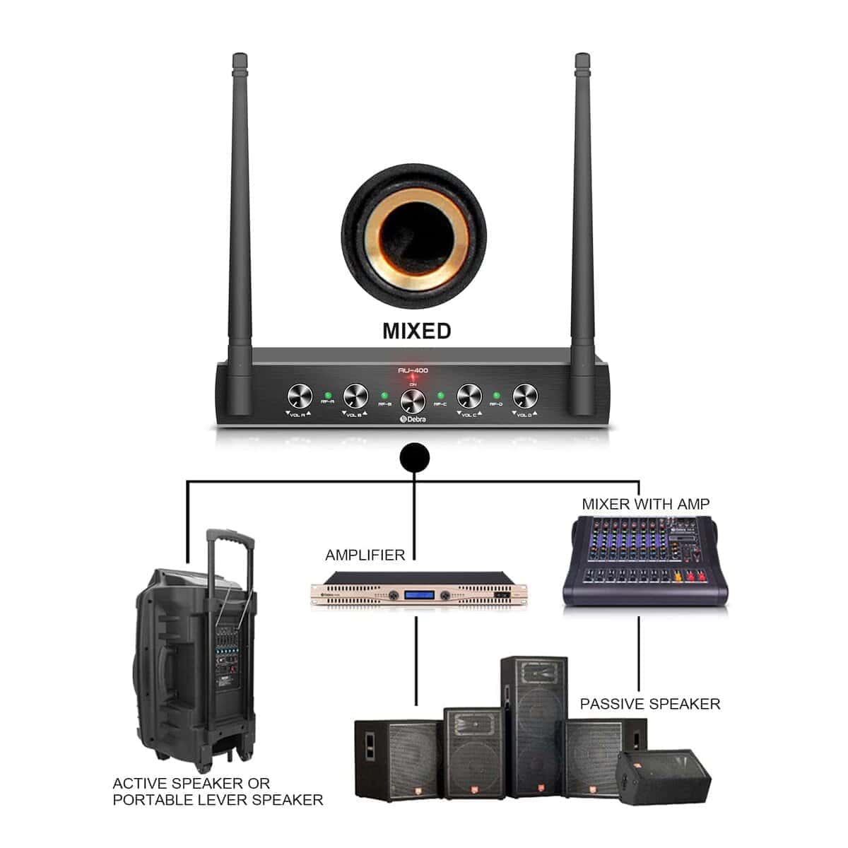 El sistema de micrófono inalámbrico Debra Audio AU400 de 4 canales es perfecto para una variedad de aplicaciones, desde karaoke en casa hasta presentaciones profesionales en iglesias y conferencias.
