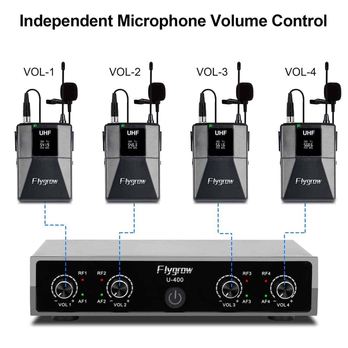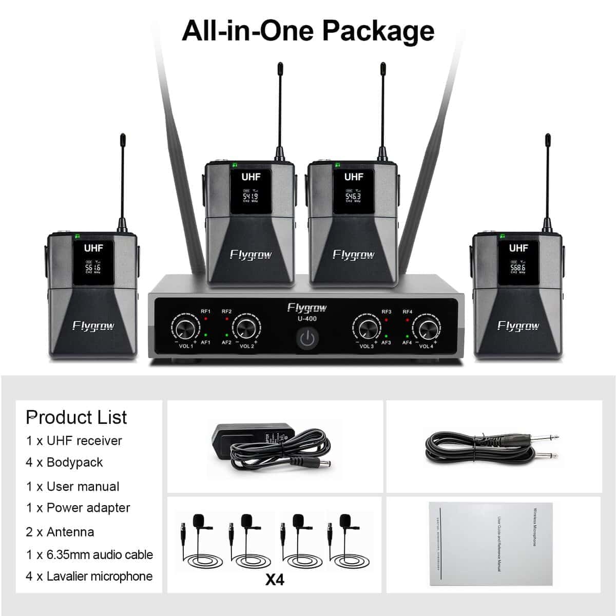Sistema de micrófono inalámbrico Flygrow Pro UHF de 4