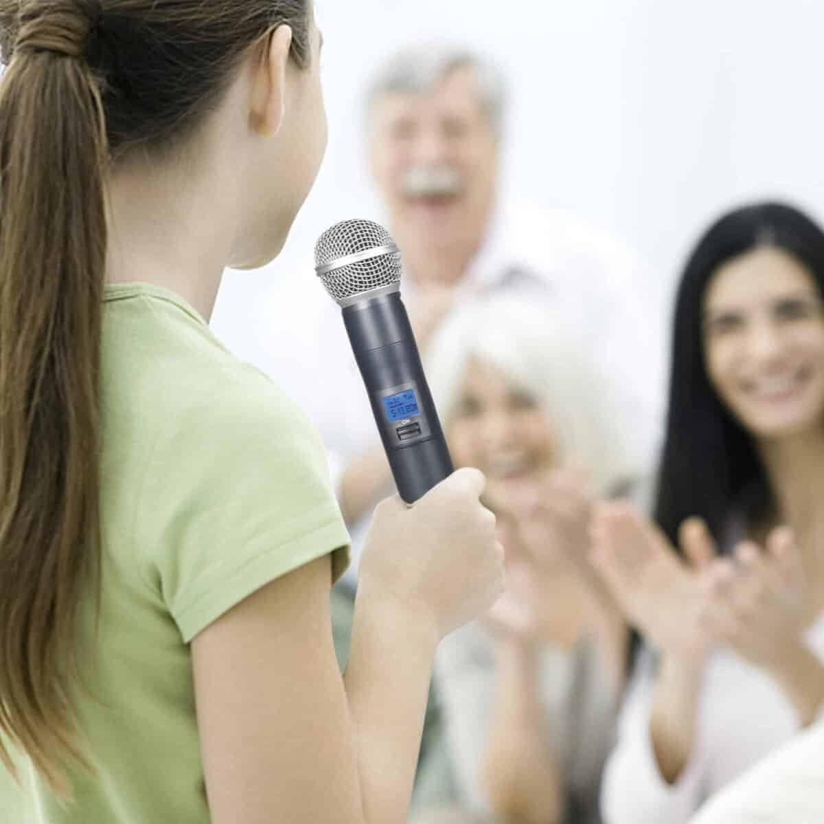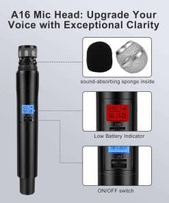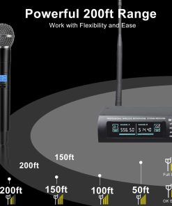 WM200 es una frecuencia fija, no puede funcionar en el mismo lugar y tiempo. Tenemos 5 grupos de canales de frecuencia fija, vendidos en cinco páginas diferentes. Cualquier problema, por favor contáctenos. Ideal para iglesias, diversas fiestas, conferencias, noches de karaoke felices, presentaciones, etc. El diseño inalámbrico te permite moverte más allá de lo que harías con un micrófono con cable y sin el cable arrastrándose por el suelo. Distancia de trabajo de aproximadamente 150-200 pies en área abierta. Nota: Por favor, tómate 5 minutos para encontrar un canal que no tenga ninguna interferencia. Especialmente para eventos en vivo. Requiere equipos de audio adicionales como altavoz para conectarse con este producto para que el sonido funcione. Por favor, mantén el receptor alejado de metales o cualquier dispositivo digital para evitar posibles fuentes de interferencia. El receptor debe estar a más de 1 metro del suelo. Por favor, evita colocarlo contra una pared. No uses el micrófono muy cerca del receptor para evitar interferencias de ruido. Por favor, no golpees la cabeza del micrófono con la mano, ya que podría dañarse.