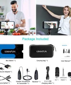 El sistema de micrófono inalámbrico KIMAFUN es una excelente opción para aquellos que buscan libertad de movimiento y excelente calidad de sonido. Con una transmisión inalámbrica de 2.4 GHz, este micrófono ofrece una alta estabilidad de señal, baja interferencia y un corto retraso de audio. Con tecnología de captura precisa y alta fidelidad, reproduce tu sonido de forma más nítida y clara.