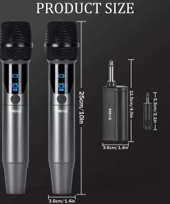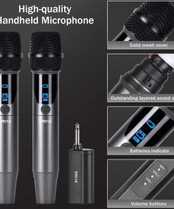 1. 2.4 GHz Wireless Microphone: La frecuencia de 2.4GHz es estable y tiene una fuerte capacidad anti-interferencia. Respuesta de frecuencia 40Hz-18KHz SNR >90dB Distorsión <0.1%, Latencia <3ms. El set de micrófonos es menos afectado por interferencias de señal, con una distancia inalámbrica de 100 pies, garantiza una transmisión de audio suave. 2. Dos Pasos de Emparejamiento, Fácil de Usar: Encienda el interruptor del micrófono y el receptor, conecte un dispositivo con una entrada de micrófono de 1/4'' (6.5mm) o 1/8'' (3.5mm) y el micrófono y el receptor se emparejarán automáticamente. Si el micrófono no tiene sonido, por favor verifique si el micrófono o el receptor tienen energía. 3. Calidad de Sonido Superior: Con cápsula dinámica cardioide de alta calidad, el micrófono profesional garantiza una calidad de sonido clara y real. Con volumen independiente, perfecto para karaoke, iglesia, boda, actuaciones y discursos. 4. Micrófono y receptor recargables: Tanto el micrófono como el receptor son recargables. Después de cargar durante 30 minutos, pueden funcionar más de 3 horas. La pantalla LCD del micrófono muestra el nivel de energía, por lo que no tendrás que preocuparte de que el micrófono deje de funcionar de repente. 5. Compatible con múltiples dispositivos: Con salidas de 1/4'' (6.5mm) y adaptador de 6.5mm a 3.5mm, es compatible con una variedad de dispositivos con entrada de micrófono de 1/4'' (6.5mm) o 1/8'' (3.5mm), como mezcladores de audio, máquinas de karaoke, altavoces, etc. (Aviso: No es compatible con teléfonos, PC, TV).