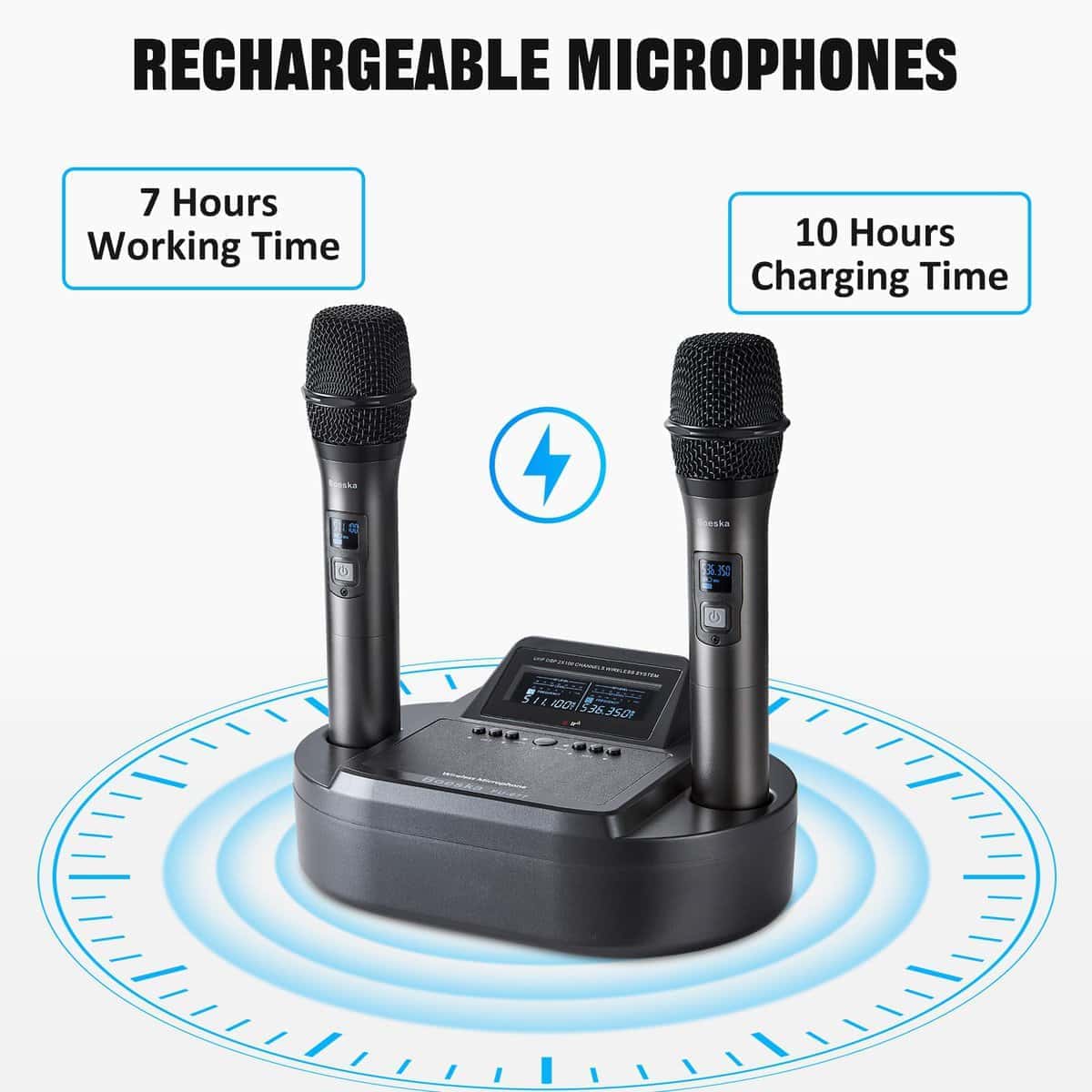 Sistema de Micrófono Inalámbrico Recargable de Mano UHF