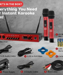 Este Sistema de Micrófono Inalámbrico UHF Pyle está diseñado para entusiastas del karaoke en casa y artistas profesionales. Con su transmisión de señal UHF, obtendrás audio claro y sin distorsiones. El sistema incluye capacidad de transmisión Bluetooth, antenas ajustables y una variedad de opciones de conectividad para adaptarse a cualquier necesidad. Es perfecto para eventos de DJ, fiestas en casa o compromisos profesionales, ofreciendo un impresionante rango inalámbrico de hasta 165 pies. Los micrófonos manuales funcionan con batería, lo que hace que este sistema sea altamente portátil y conveniente para diferentes entornos.