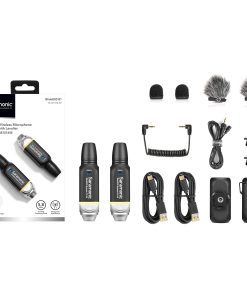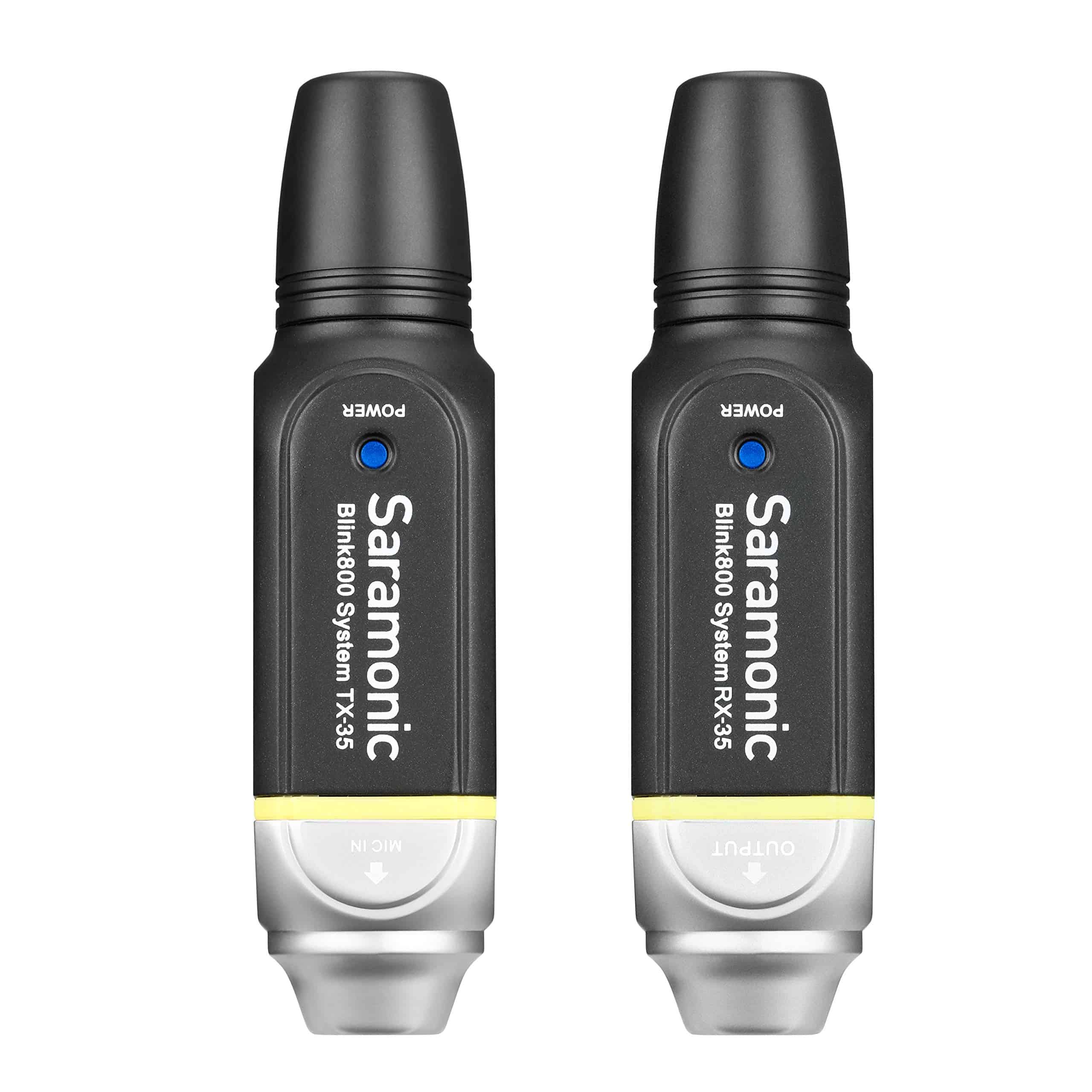 «El Saramonic Blink 800 B1 es un sistema Lavalier Inalámbrico de 5.8GHz increíblemente compacto y fácil de usar que está diseñado para cámaras, grabadoras y mezcladoras. El sistema cuenta con el transmisor de cinturón TX-35 y el receptor montable en cámara RX-35, juntos proporcionan un sistema inalámbrico fácil de usar y confiable para cualquier usuario que suena genial en cada ocasión. El sistema también incluye el micrófono lavalier premium DK3A de 4mm de Saramonic, que ofrece un sonido profesional detallado y de alta calidad. Sin configuraciones o controles que ajustar, te permite simplemente encender el sistema y empezar a grabar. Simplemente Enciéndelo, para un Gran Sonido Inalámbrico Debido a que no hay configuraciones o menús de los que preocuparse, el Blink 800 Pro B1 podría ser el sistema inalámbrico más simple y profesional del mercado. Pre-configurado de fábrica y no hay nada más que hacer que conectar el Lavalier al transmisor TX-35 y conectar el receptor RX-35 a tu cámara o dispositivo de grabación, encenderlos y empezar a grabar. Todos los aspectos complicados de usar micrófonos inalámbricos suceden sin problemas en segundo plano, permitiéndote concentrarte en contar historias y obtener una gran toma. Junto con el lavalier omnidireccional premium DK3A incluido, el sistema Blink 800 B1 ofrece una respuesta de frecuencia nítida y completa e inteligibilidad vocal mejorada a tus producciones y grabaciones. Un Sistema Poderosamente Avanzado de 5.8GHz El Blink 800 B1 opera en el rango de frecuencia de 5.8GHz, que está mucho menos congestionado que 2.4GHz, UHF y VHF. Cambia automáticamente de canal para evitar ruidos y cortes de audio y cuenta con una potencia inalámbrica de 10mW, proporcionando un impresionante alcance de hasta 60m en espacios abiertos. Con hasta 6 horas de duración de la batería, el transmisor y el receptor se pueden cargar con cables USB a USB-C incluidos e incluso pueden alimentarse mientras se usan o recargarse en el campo con bancos de baterías USB portátiles.»