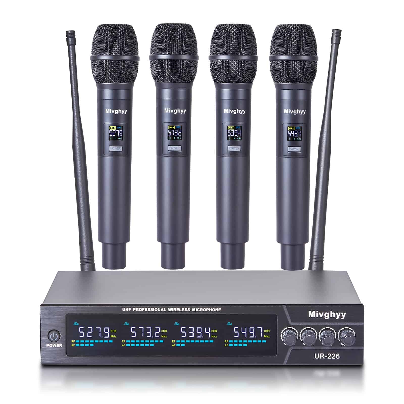 UR-226 sería una buena elección si deseas un gran karaoke y es un excelente sistema de micrófono inalámbrico. La bobina dinámica con respuesta de banda ancha para bajos más completos y agudos más finos. La captura cardioide reduce eficazmente el ruido ambiental y centraliza la recepción del sonido. La conexión simple a Smart TV, mezclador, amplificador, altavoz, sistema de entretenimiento en el hogar y otros dispositivos te permite comenzar el karaoke en cualquier momento. La excelente optimización te permite lograr una experiencia de canto extraordinaria ajustando volumen y banda de frecuencia. UR-226 tiene un rango de cobertura inalámbrico de 164 pies. La banda de frecuencia UHF garantiza la claridad de la señal, y los 50 puntos de frecuencia de cada micrófono aseguran la estabilidad de la señal. No tienes que preocuparte por accidentes de interferencia desarmónicos durante el canto. Con cabeza de malla de metal con esponja para evitar explosiones, pantalla LCD en tiempo real y carcasa de metal, UR-226 está bien construido para proteger los circuitos internos. Cada micrófono inalámbrico requiere 2 pilas AA (pilas no incluidas). Todos los productos Mivghyy vienen con 12 meses de garantía del fabricante y un servicio de atención al cliente atento. Bienvenido a contactarnos para cualquier problema de resolución de problemas.