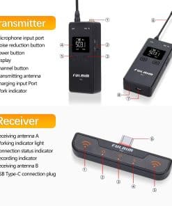 Sistema de micrófono inalámbrico de solapa FULAIM VL1 para teléfonos Android. Una elección perfecta para las necesidades de grabación móvil, sincronización inalámbrica fácil y flexible entre transmisor y receptor, compacto y ligero, fácil de transportar e instalar, que ofrece una fácil operabilidad para periodistas móviles, videografos y vloggers de cualquier nivel de experiencia. Opera en la banda de frecuencia UHF, y la estabilidad de la señal no está sujeta a interferencias. Su diseño preciso garantiza el funcionamiento seguro y confiable del proceso. Incluye un micrófono lavalier omnidireccional, rango de frecuencia de 30Hz-18KHz y una relación señal/ruido de 92dB. Viene con receptor, transmisor de cuerpo, cable de carga y manual de usuario.