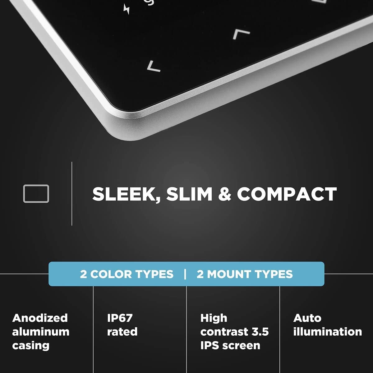 3. Diseño elegante: PICO es delgado, compacto y elegante. Disponible en 2 tipos de montaje y 2 colores (negro, plata). La pantalla está ópticamente unida. Cuenta con una pantalla IPS de alta resolución de 3.5 pulgadas con Gorilla Glass, un filtro polarizante e iluminación automática. La carcasa de aluminio anodizado IP67 clasificada es resistente al agua y al polvo.