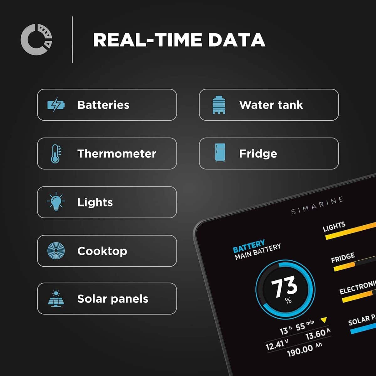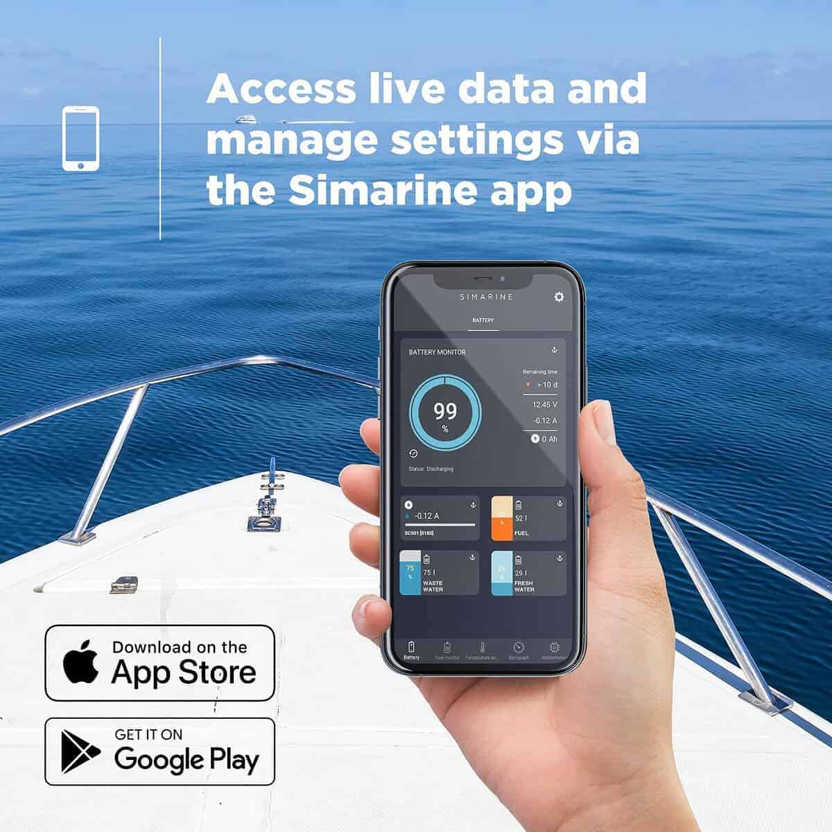 5. Aplicación Simarine: Monitorea datos en vivo sobre baterías, tanques, temperaturas, barógrafo, consumo de electrodomésticos y generadores auxiliares. Configura tu PICO y actualiza su firmware.