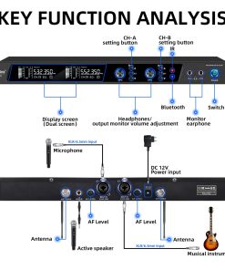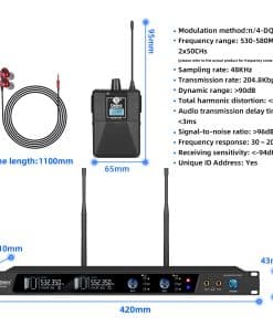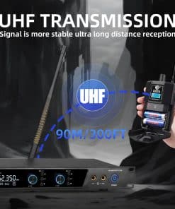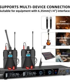 El Sistema de Monitor Inalámbrico D Debra Audio PRO ER-202 UHF de Doble Canal es una excelente opción para aquellos que necesitan un monitoreo en el escenario u otras aplicaciones musicales. Con la tecnología UHF y el lazo de fase PLL, este sistema garantiza una señal más fuerte y estable, con una mejor relación señal-ruido. Gracias a las 100 frecuencias preestablecidas para cada canal, se puede evitar la interferencia de señal de manera efectiva. Este sistema es adecuado para una variedad de lugares, desde escenarios hasta estudios de grabación, proporcionando un sonido claro y sin distorsión. Con una distancia efectiva de hasta 800 pies en un escenario abierto, este sistema ofrece una excelente calidad de sonido. El transmisor cuenta con un panel de visualización LCD, mientras que el receptor tiene una pantalla LCD, indicador de potencia y recepción RF. La lista de embalaje incluye todo lo necesario para comenzar a utilizar este sistema de monitor inalámbrico de alta calidad.