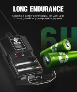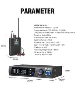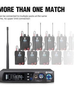 Descripción: El Sistema de Monitor Inalámbrico D Debra Audio PRO ER-102 UHF es ideal para escenarios, transmisiones, estudios de grabación, músicos, y actuaciones en banda. Con un rango de frecuencia de 510 MHz-580 MHz y 100 frecuencias preestablecidas para cada canal, puede evitar mejor las interferencias de señal. La distancia efectiva puede llegar a 800 pies en un escenario despejado. El transmisor cuenta con un panel LCD, RF y pantalla AF, mientras que el receptor tiene indicador de alimentación y recepción de RF. Incluye: 1 Transmisor, 1 Receptor Bodypack (con Auriculares), 1 Antena, 1 Adaptador de Corriente, 1 Manual de Usuario. ¡Conéctelo a un número ilimitado de receptores Bodypack para una experiencia auditiva inalámbrica completa!