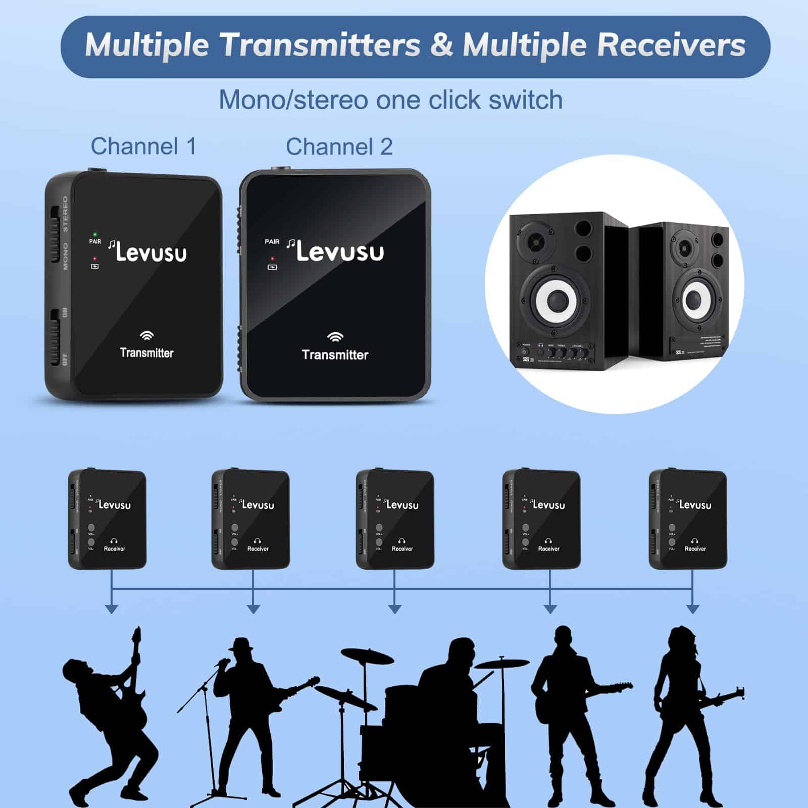 3. Sistema de monitor extensible Varios receptores pueden emparejarse con un TX al mismo tiempo; Admite hasta 6 juegos de dispositivos que pueden trabajar simultáneamente al mismo tiempo. Funciona perfectamente en diversos eventos de monitoreo de sonido, actuaciones en vivo, grabación de estudio, exhibición, conferencias, instrucciones, discursos, etc.