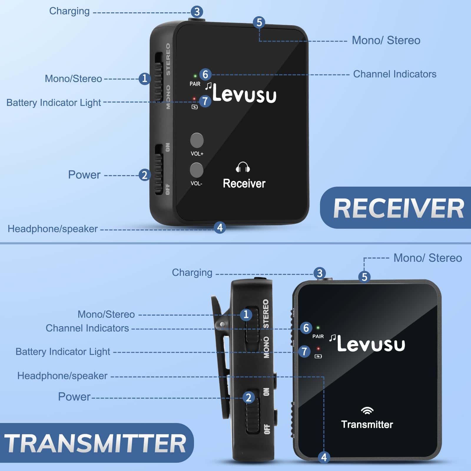 5. Compra con confianza garantía de un año, cualquier pregunta haga clic en las opciones de «SU PEDIDO» haga clic en «contactar al vendedor». Lista de embalaje: 1 Transmisor inalámbrico, 1 Receptor de bodypack, cables de audio de 3.5 mm, 1 cable de carga, 1 adaptador de 3.5 mm a 6.5 mm, 1 Manual.