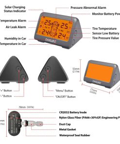 Sistema de Monitoreo de Presión de Neumáticos DEEWAZ MY77T Solar TPMS, un dispositivo avanzado para garantizar una conducción segura y eficiente. Con su pantalla naranja y tecnología FSTN, protege tus ojos y garantiza una visibilidad clara incluso bajo la luz solar directa. La retroiluminación automática se enciende cuando la luz ambiental se debilita, y la pantalla se pone roja en caso de detección de anomalías. Puede instalarse fácilmente en el parabrisas o consola central para un uso sencillo. Este TPMS cuenta con 6 alarmas para una conducción segura: alta presión, baja presión, fuga de aire, alta temperatura, batería baja del sensor y fallo en la conexión del sensor. Los sensores internos cuentan con una función de detección de movimiento, activándose automáticamente al ponerse en movimiento y actualizando rápidamente los datos de presión y temperatura de los neumáticos. Cuando el vehículo se estaciona, los sensores entran en modo de suspensión para ahorrar energía y prolongar la vida útil de la batería. Equipado con 4 sensores internos impermeables IP67, este sistema es conveniente y duradero para un uso diario. Además, su diseño permite una configuración de alarma de presión de neumáticos delanteros y traseros de manera personalizada, lo que lo hace compatible con una amplia gama de neumáticos. MY77T TPMS es adecuado para neumáticos de menos de 8 bares / 116 psi, como automóviles, SUVs, RVs, MPVs, Sedanes, Wagons, entre otros, excluyendo camiones/remolques y vehículos de más de 19.6 pies de longitud. Este producto incluye garantía de 1 año y servicio postventa de por vida, brindando tranquilidad y respaldo al cliente. Además, ofrece la funcionalidad de mostrar la temperatura y humedad en el automóvil, permitiendo al conductor tomar decisiones para obtener un ambiente más confortable en el interior del vehículo.