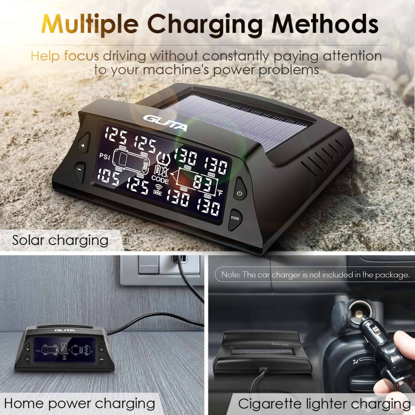 Sistema de Monitoreo de Presión de Neumáticos GUTA para RV con 8 Sensores TPMS, diseñado para proporcionar una solución completa y avanzada de monitoreo de la presión de los neumáticos para remolques y vehículos recreativos (RV). Este sistema de monitoreo de presión de neumáticos cuenta con una distancia de aceptación más larga que le permite monitorear hasta 8-10 neumáticos, incluidos los neumáticos de repuesto. Los sensores externos de alta gama proporcionan una detección precisa y confiable de la presión de los neumáticos. Además, el sistema ofrece múltiples métodos de carga, ya sea por energía solar o a través de un cable USB, lo que garantiza que el sistema pueda funcionar de manera continua sin interrupciones. Con 6 modos de alarma diferentes, este TPMS está diseñado para alertar a los conductores sobre situaciones anormales, como fugas rápidas, alta o baja presión de los neumáticos, altas temperaturas, bajo voltaje del sensor y pérdida de datos del sensor, brindando una capa adicional de seguridad al conducir. La pantalla LCD de gran tamaño con retroiluminación automática facilita la lectura de los datos en cualquier entorno de luz, mostrando la presión y temperatura de los neumáticos de manera clara y organizada. Además, el modo de ahorro de energía garantiza una mayor durabilidad de la batería y una mayor eficiencia energética, lo que hace que este sistema de monitoreo de presión de neumáticos sea una opción confiable y conveniente para los conductores de RV y remolques. ¡Proteja su seguridad en la carretera y mantenga sus neumáticos en óptimas condiciones con el Sistema de Monitoreo de Presión de Neumáticos GUTA para RV!