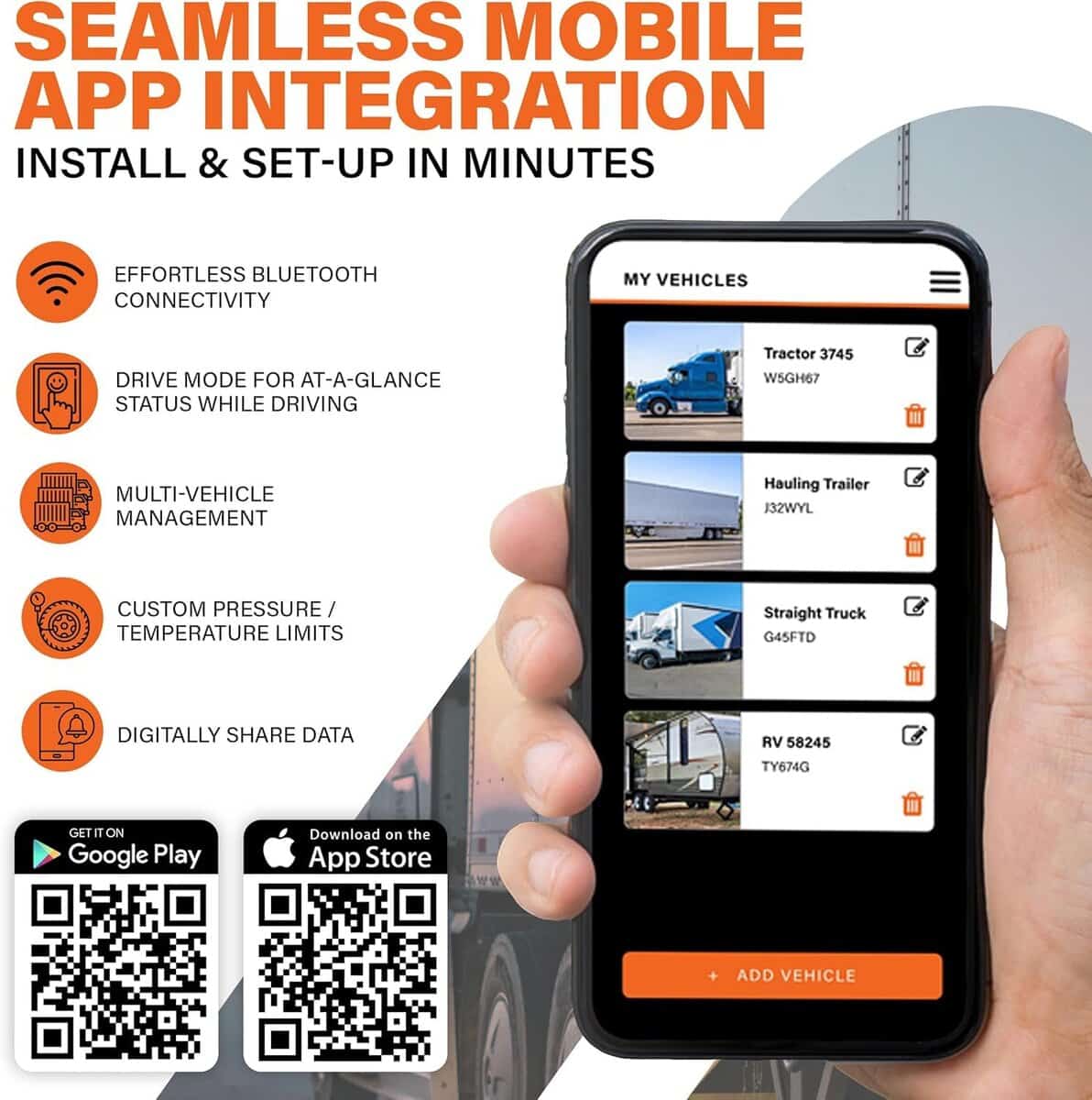 ADVANCED APP INTEGRATION – Manage your tire health effortlessly with the PressureTechTM mobile app. This intuitive platform allows you to oversee multiple vehicles, set personalized pressure alerts, and check real-time tire conditions, making tire pressure monitoring and tire maintenance straightforward and efficient. Supports iOS & Android.