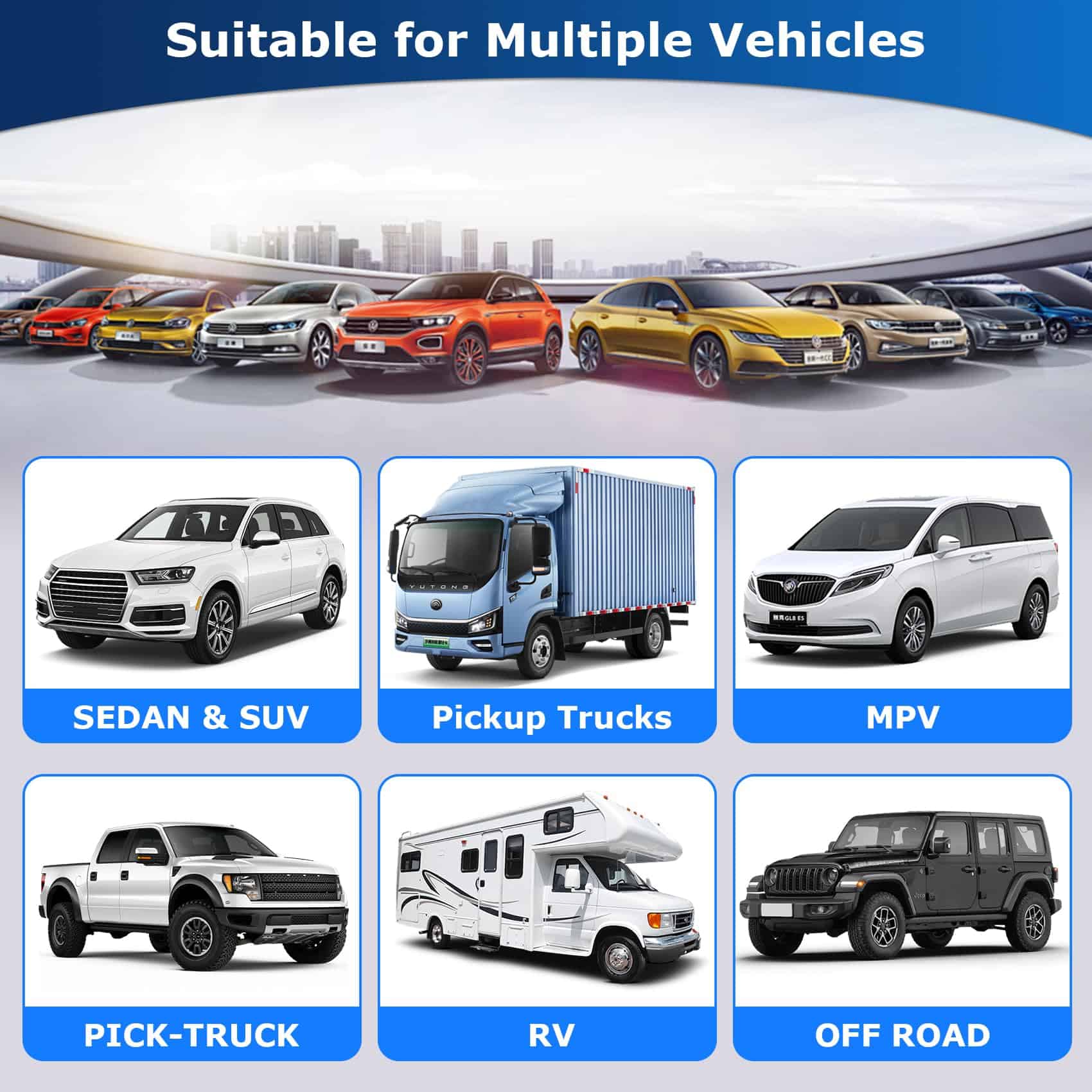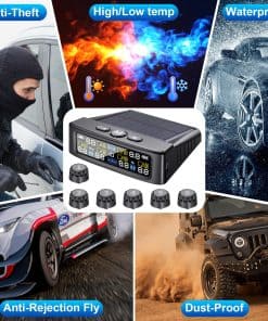Rango de detección ampliado y durabilidad en cualquier clima – Más material duradero de la Actualización 2025 y resistente al agua IP68, diseñado para resistir entornos extremos, nuestro TPMS es resistente al agua, al polvo, al viento y a la nieve, ofreciendo un rendimiento confiable sin importar el clima. Además, mediante el uso de un repetidor, garantiza un monitoreo exhaustivo de los neumáticos incluso para RVs, remolques y camiones más grandes.