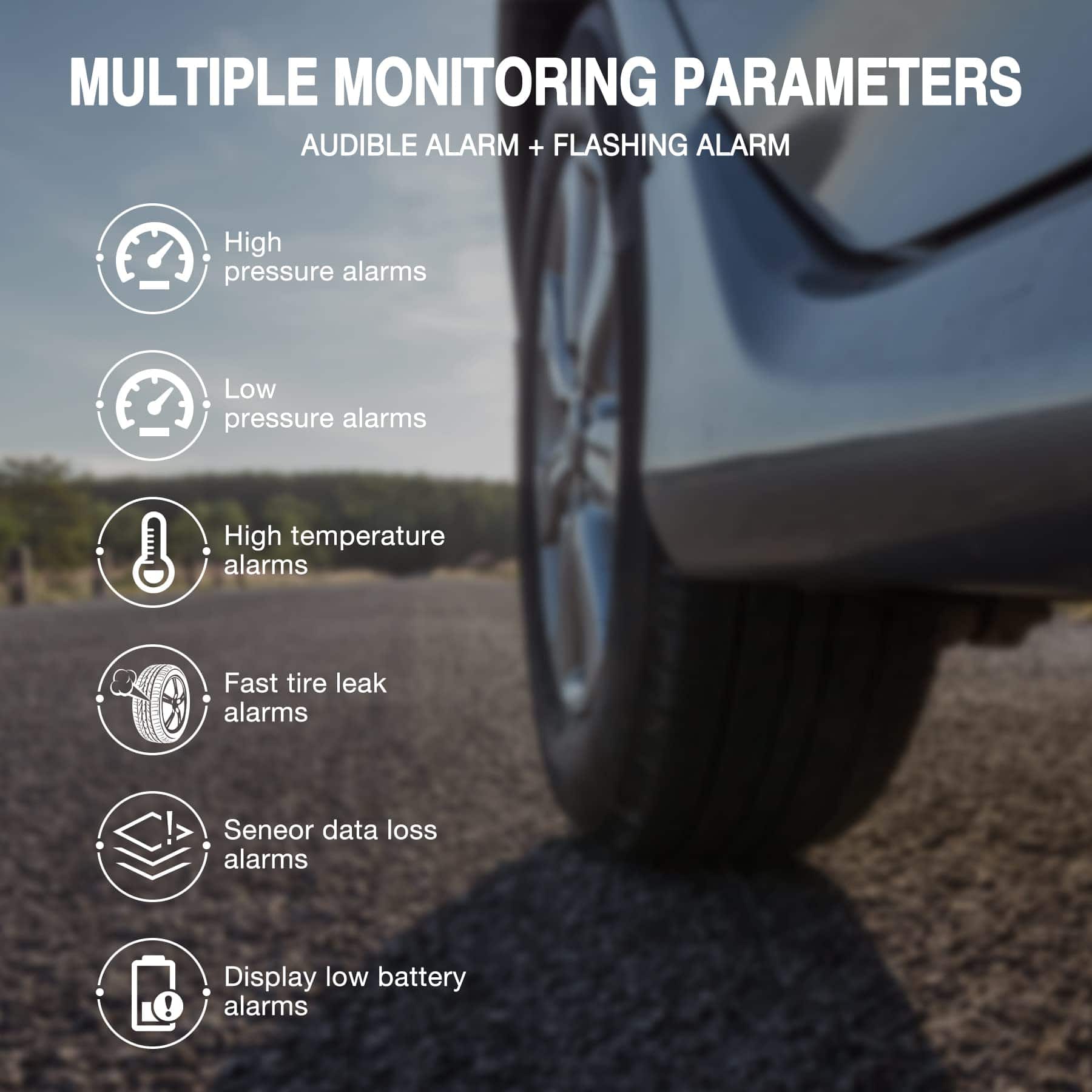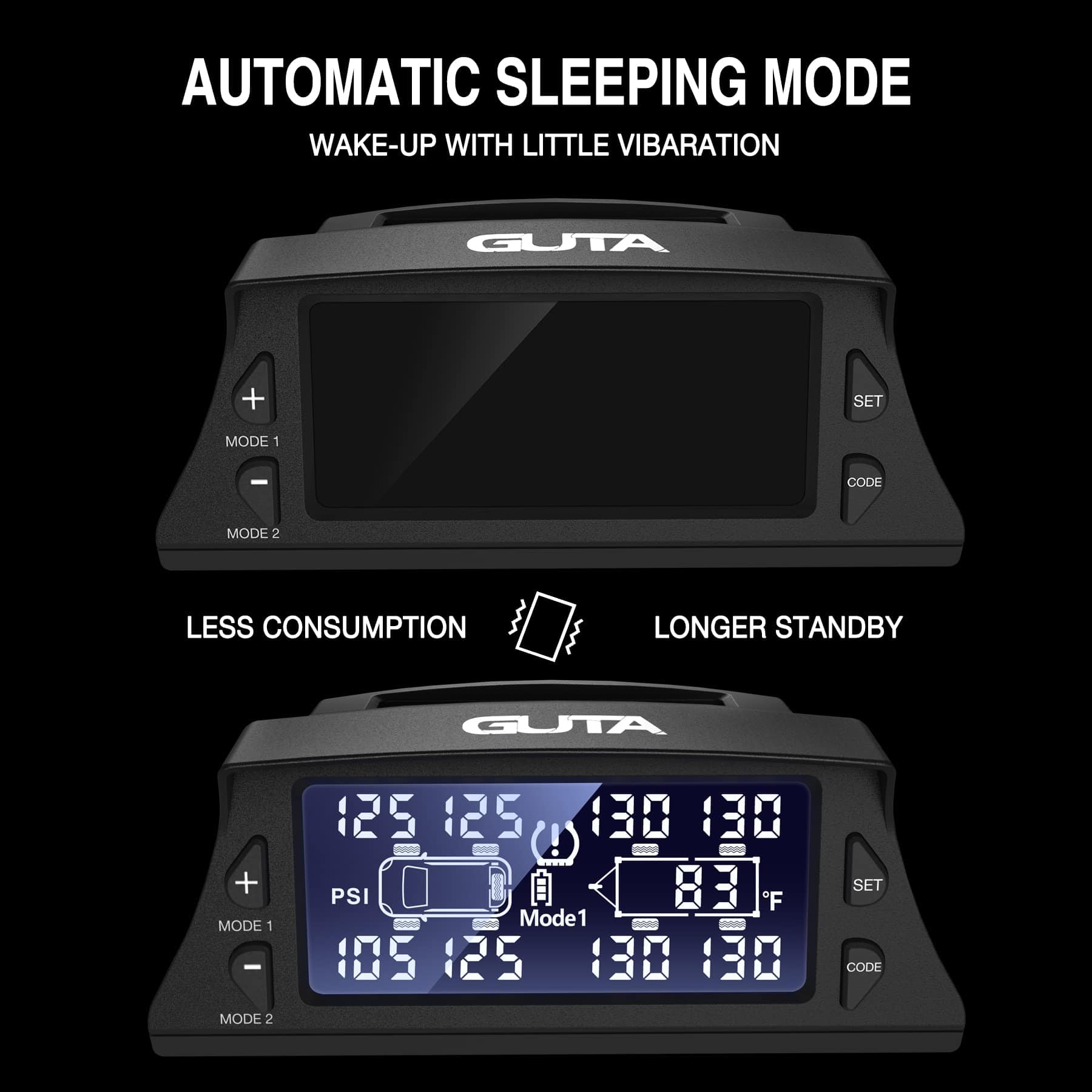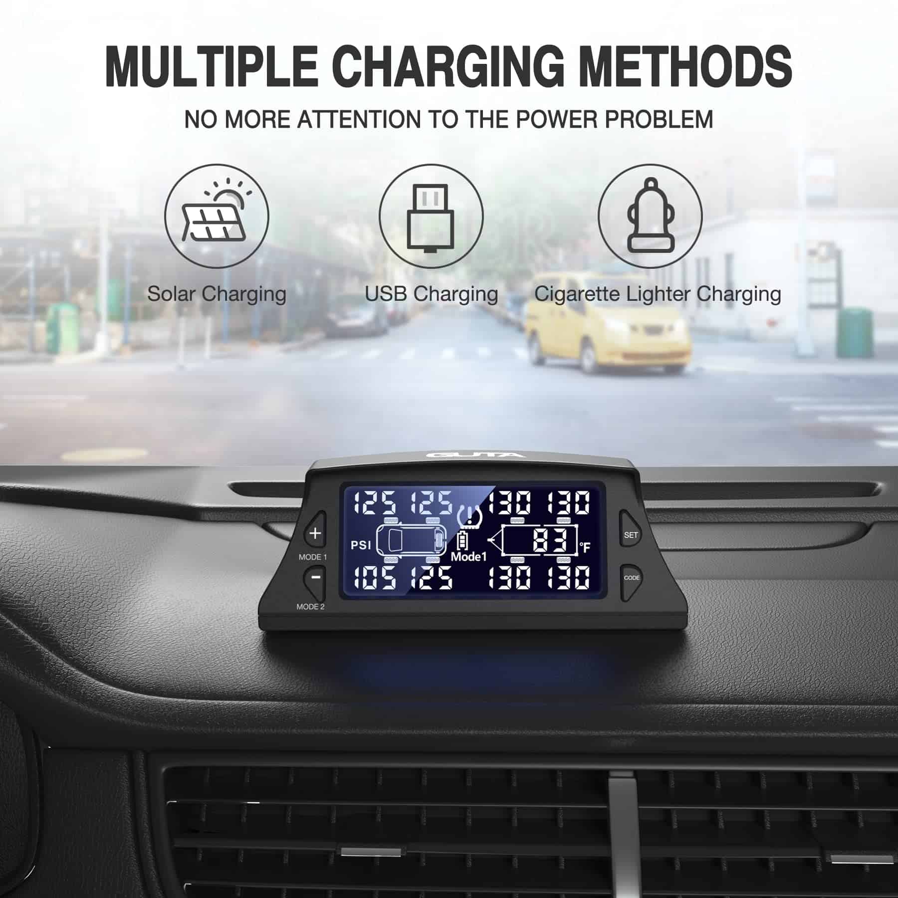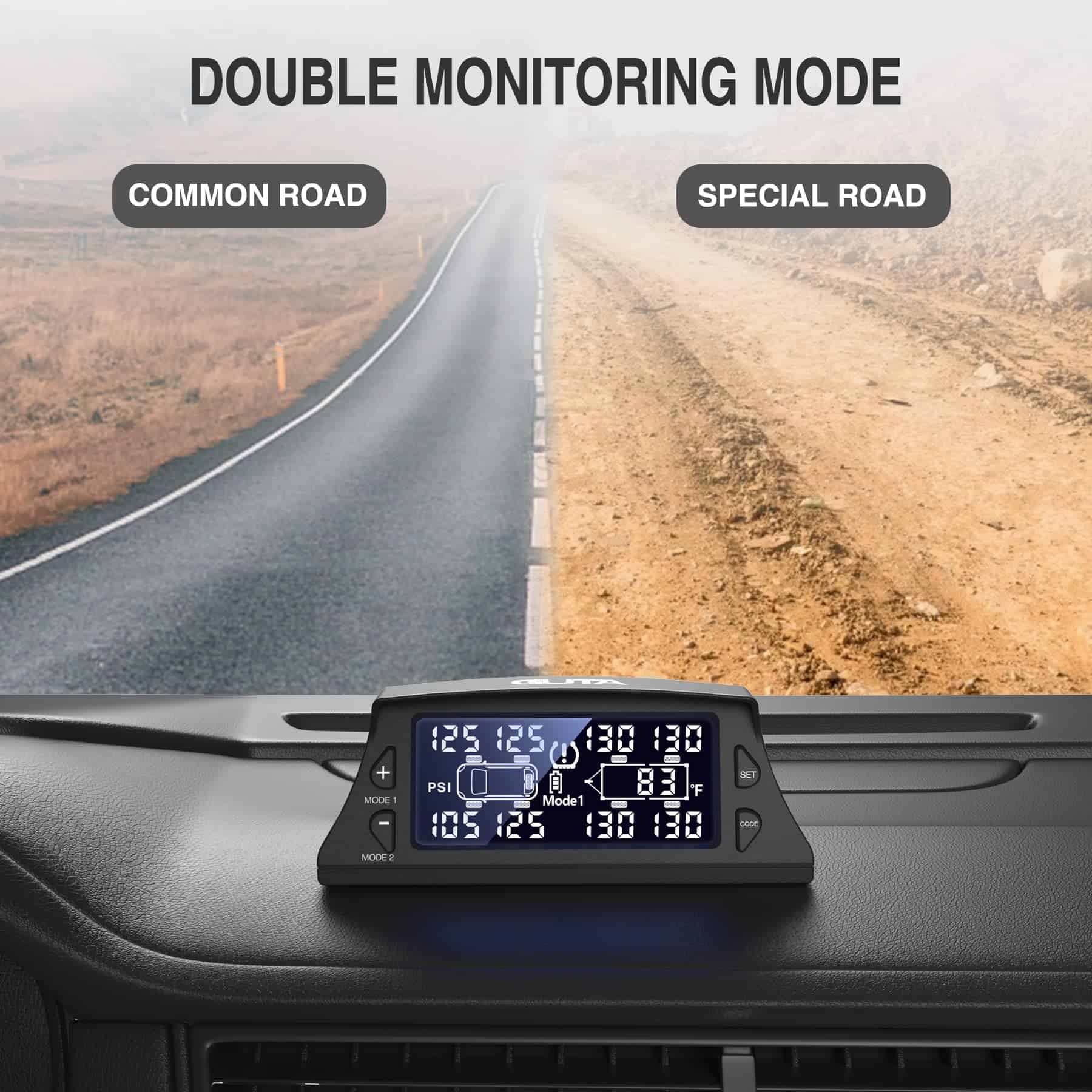 El Sistema de Monitoreo de Presión de Neumáticos para RV GUTA es una herramienta imprescindible para garantizar su seguridad al conducir. Con sensores externos de alta calidad, este TPMS puede monitorear hasta 8-10 neumáticos al mismo tiempo, incluyendo los neumáticos de repuesto. Con una distancia de detección de monitoreo de hasta 36 pies, este TPMS es adecuado para una amplia variedad de vehículos. Además, cuenta con múltiples métodos de carga, incluida la carga solar y la carga USB, lo que garantiza que el sistema de monitoreo de presión de neumáticos pueda funcionar de manera continua y efectiva. Con 6 modos de alerta, que incluyen alarmas de fuga rápida, alta/baja presión, alta temperatura, baja tensión del sensor y pérdida de datos del sensor, este TPMS le mantendrá informado sobre cualquier irregularidad en la presión de los neumáticos. La gran pantalla LCD con retroiluminación automática le permite leer los datos claramente en cualquier entorno de luz, mientras que el modo de ahorro de energía garantiza una mayor durabilidad de la batería. No arriesgue su seguridad al conducir, invierta en el Sistema de Monitoreo de Presión de Neumáticos para RV GUTA y disfrute de un viaje tranquilo y seguro.