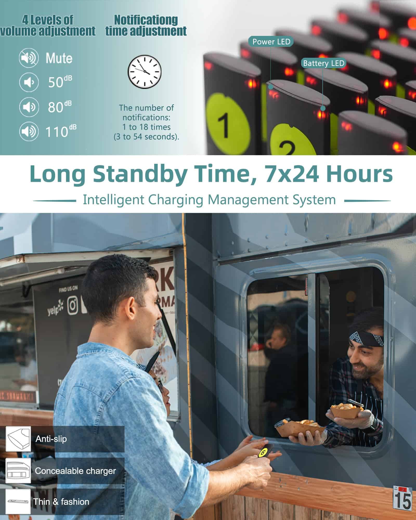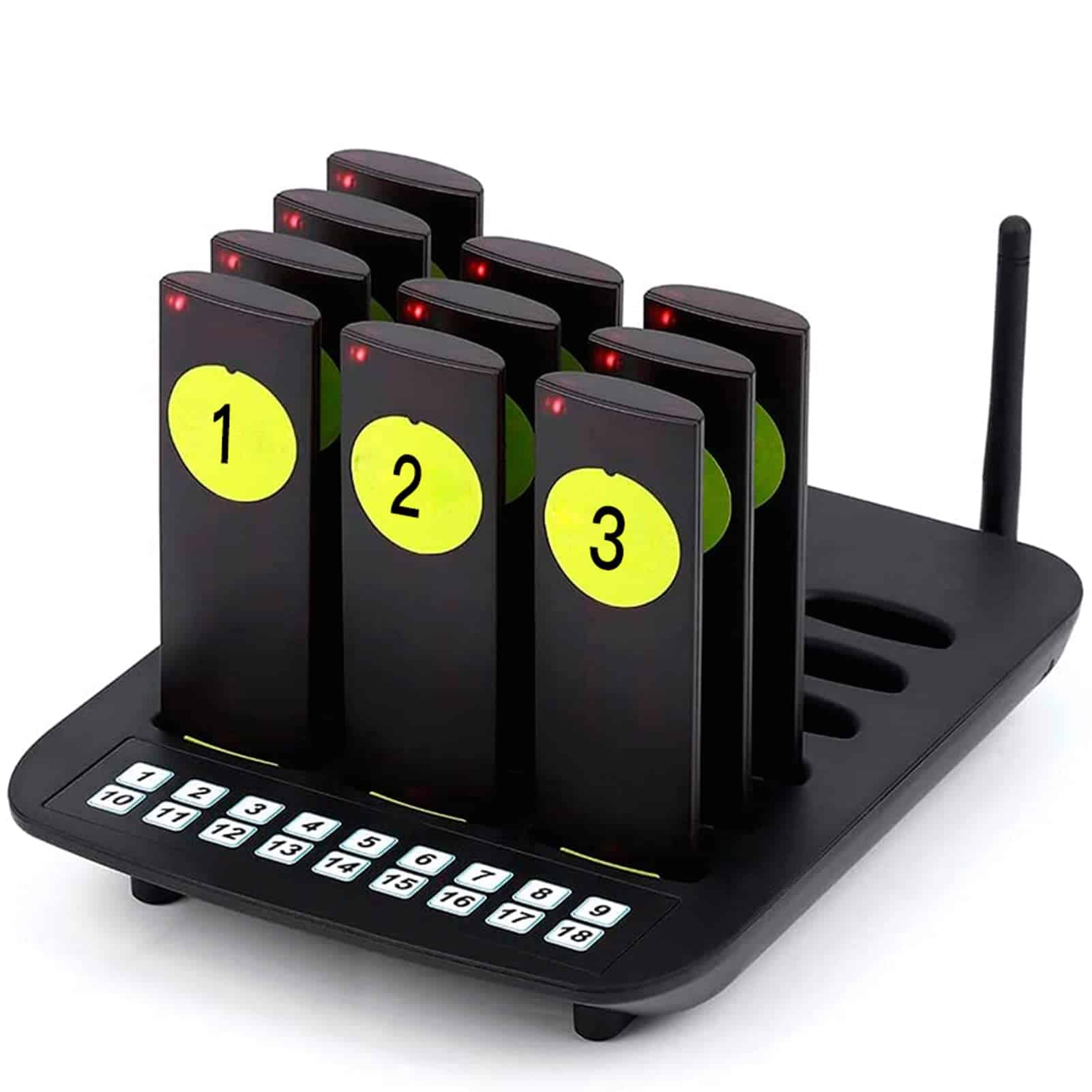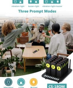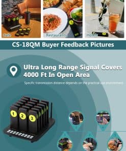 WNKRUN Sistema de Pagers para Restaurante, Zumbador de Distanciamiento Social 10 Pagers Sistema de Llamada Inalámbrica para Restaurante Camión de Comida Café Hotel. Sistema de pagers para restaurante con un largo alcance y estable señal, permite el uso simultáneo sin códigos confusos ni interferencias. Cuenta con 3 modos de alarma y ajuste de volumen variable para adaptarse a diferentes necesidades. Diseño delgado y ultra delgado, fácil de limpiar y duradero. La base de carga puede soportar hasta 18 pagers a la vez. Ideal para aplicaciones en restaurantes, hoteles, food trucks y bares. El sistema de paginación inalámbrica se destaca por su practicidad, durabilidad y soporte técnico de por vida. Contacte con nosotros si tiene alguna pregunta.
