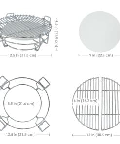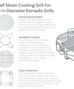 2. DURABILIDAD MEJORADA: Fabricada con acero inoxidable de alta calidad, la parrilla en forma de media luna es resistente al óxido, la corrosión y altas temperaturas, garantizando un rendimiento duradero y confiable para todas las necesidades de parrillas. El plato deflector está hecho de cerámica para distribuir el calor de manera uniforme durante la cocción.