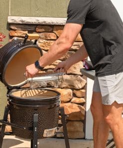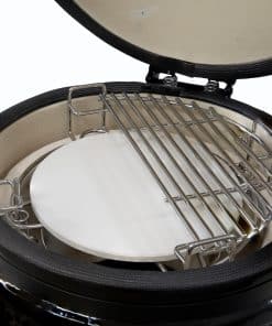 4. RETENCIÓN DE SABOR MEJORADA: La combinación de acero inoxidable y cerámica realza el sabor de los alimentos. La parrilla de la parrilla kamado sella las carnes para retener los jugos, mientras que el plato deflector de cerámica retiene el calor y la humedad, lo que resulta en platos más tiernos y sabrosos.