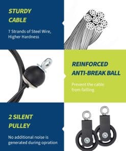 2. Poleas Silenciosas de Alta Resistencia: 360 poleas de acero con tecnología de reducción de ruido + cables de acero de 7 hebras (70″/90″) para un movimiento un 30% más suave y silencioso.